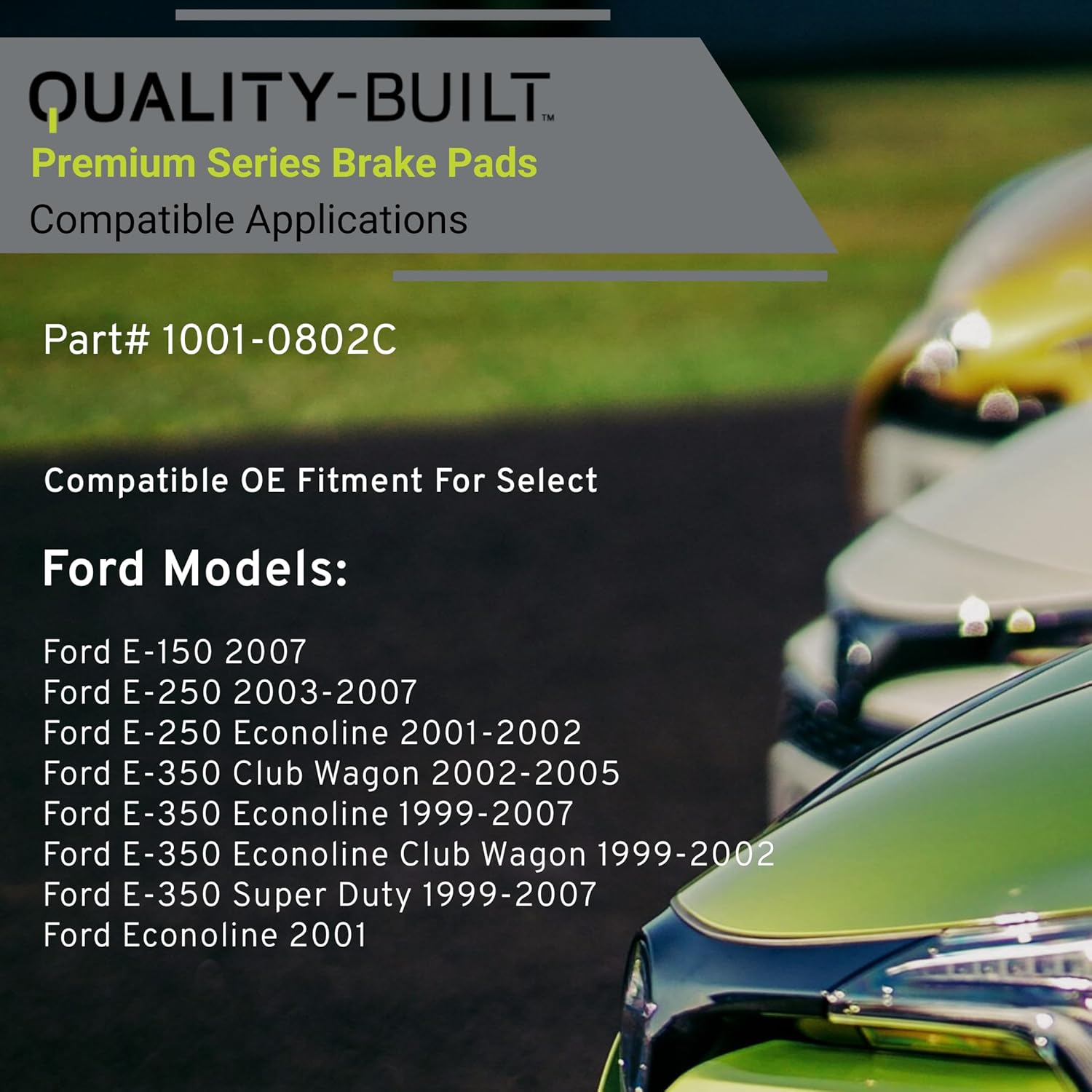 - VEHICLE FITMENT LIST: Ford E-150 2007, E-250 2007-2003, E-250 Econoline 2002-2001, E-350 Club Wagon 2005-2002, E-350 Econoline 2000-1999, E-350 Econoline 2007, E-350 Econoline Club Wagon 2002-1999, E-350 Super Duty 2007-1999, Econoline 2001