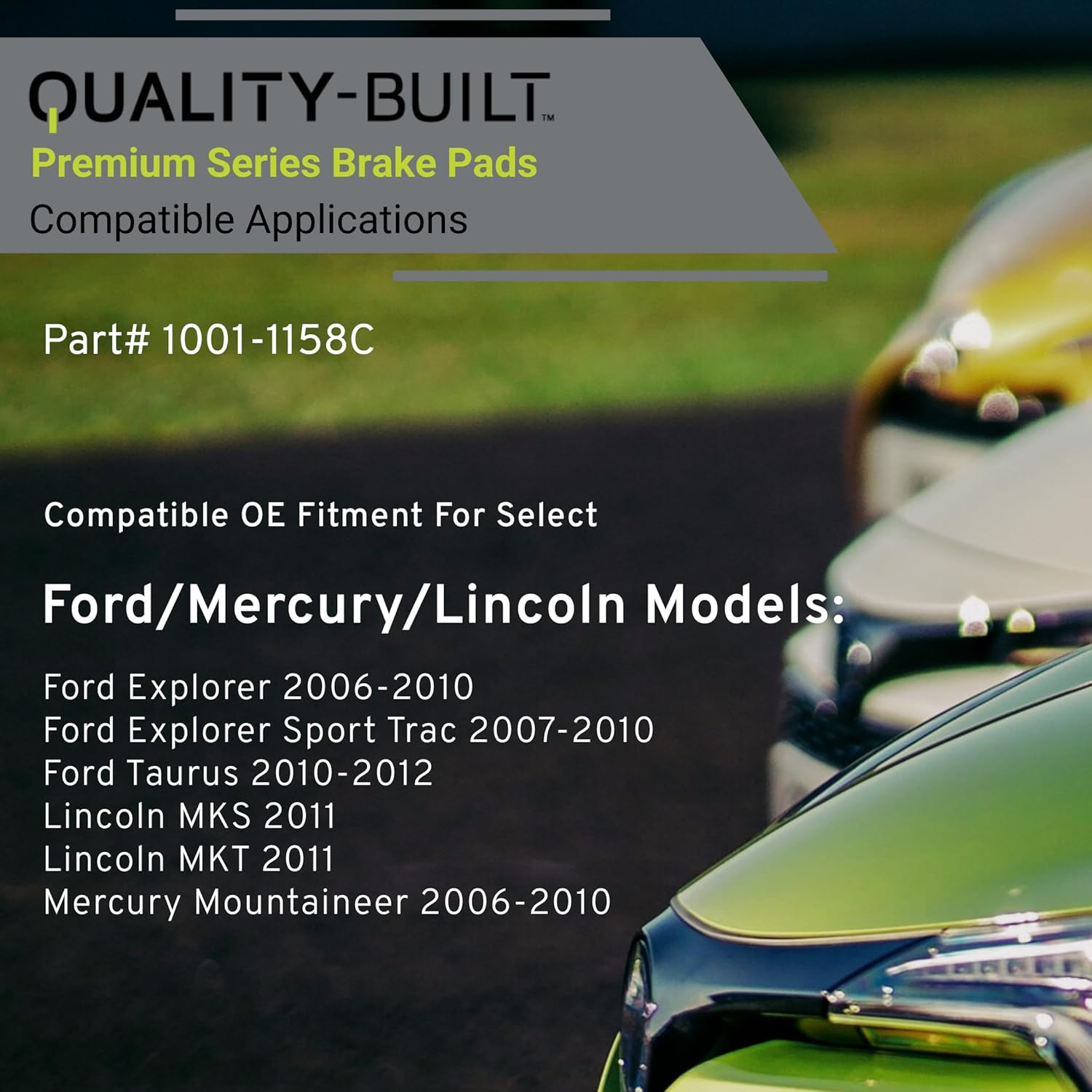 Premium Ceramic Front Brake Pads (1001-1158C) Compatible with Ford Explorer 2010-2006, Explorer Sport Trac 2010-2007, Taurus 2012-2010, Lincoln MKS 2011, MKT 2011 & More