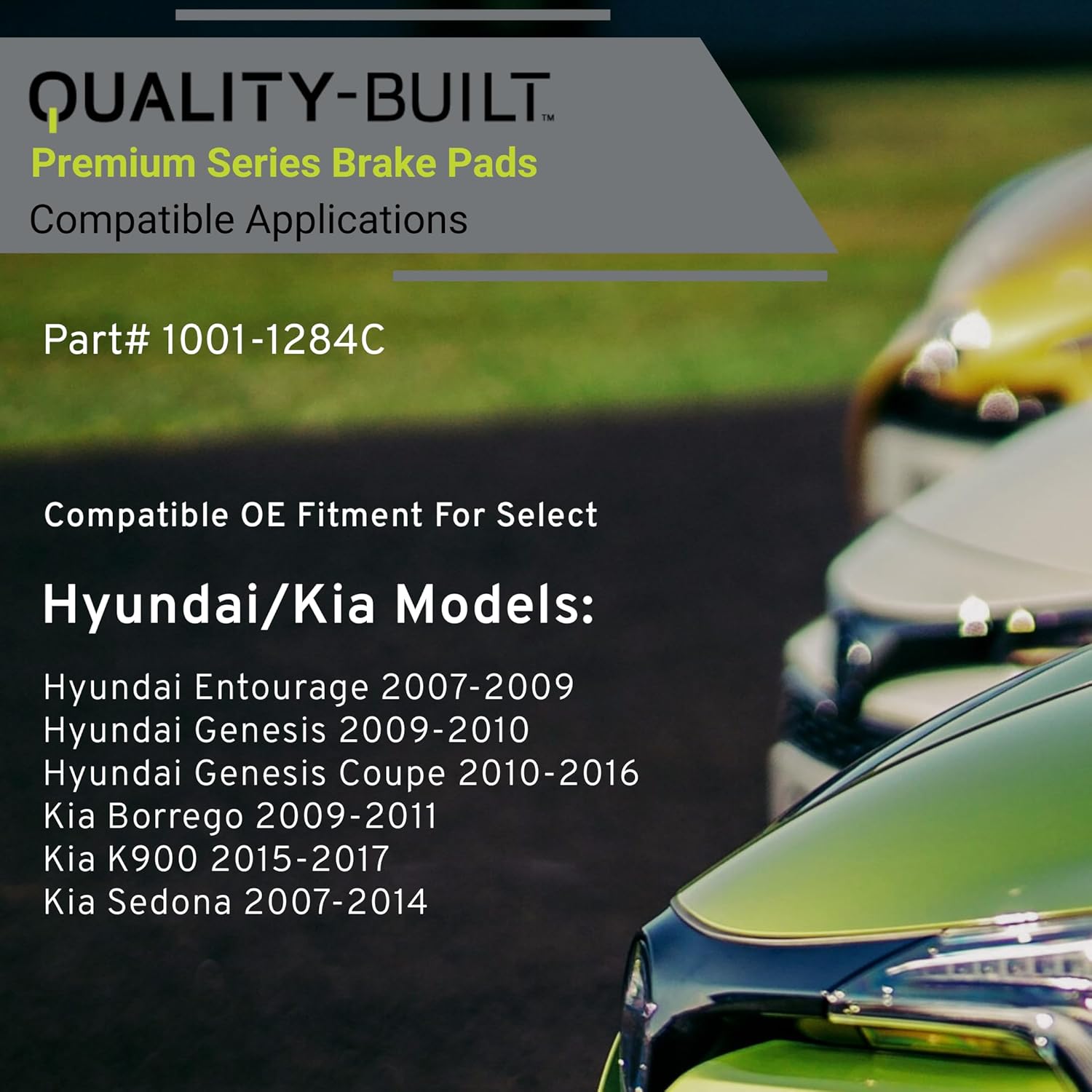 Premium Ceramic Rear Brake Pads (1001-1284C) Compatible with 2007-2017 Hyundai/Kia (Borrego/Entourage/Genesis/Genesis Coupe/K900/Sedona)