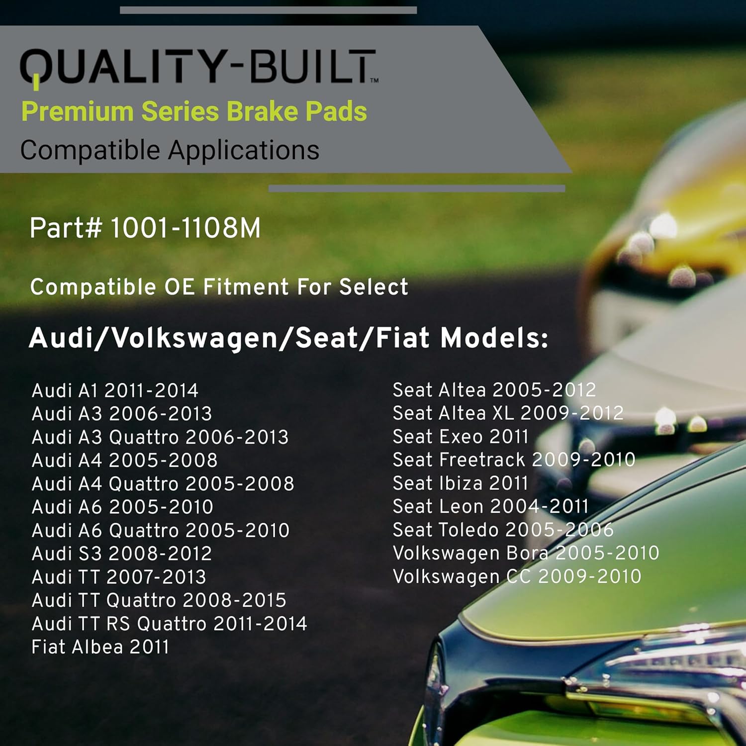Premium Semi-Metallic Rear Brake Pads (1001-1108M) Compatible with 2004-2018 Audi/Fiat/Volkswagen (A3/A4/A6/GLI/Golf/Golf R/GTI/Jetta/Passat/S3/Tiguan/TT Quattro/TT RS Quattro & More)