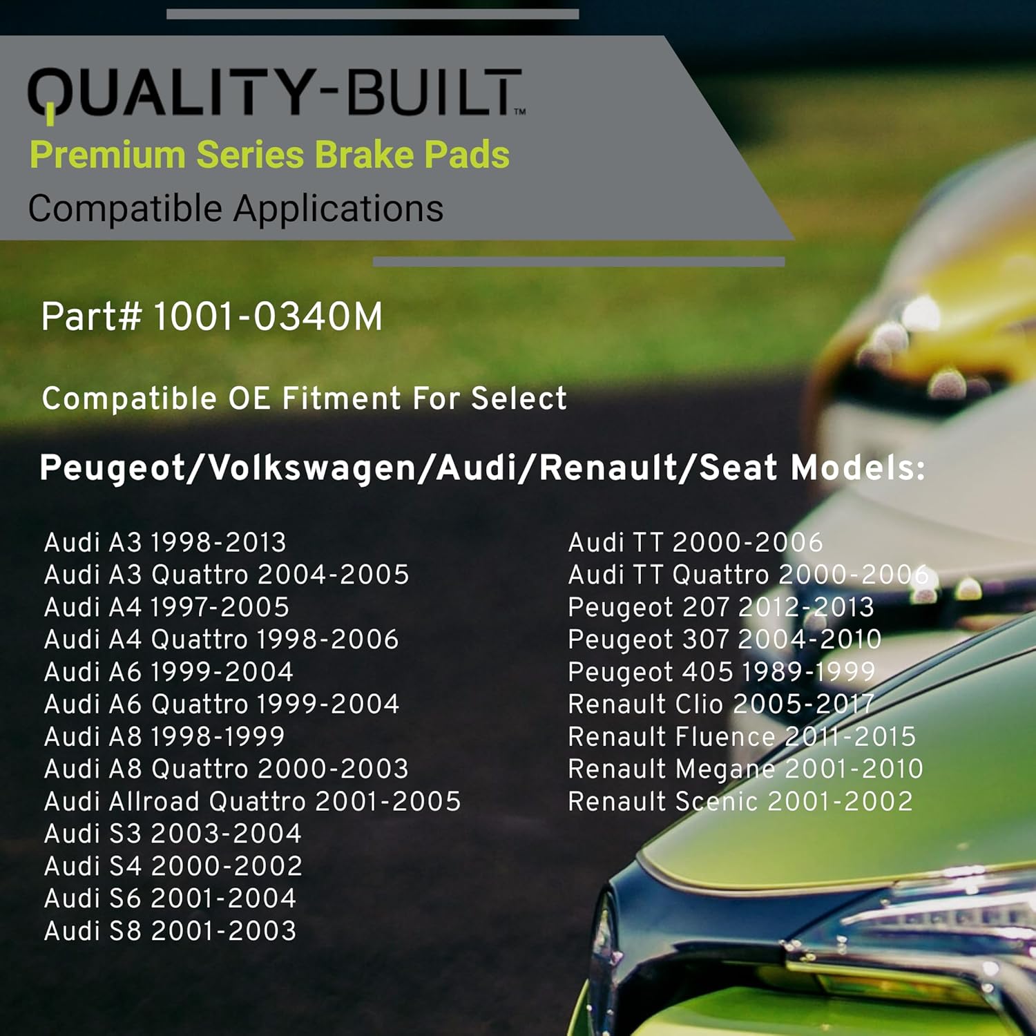 Premium Semi-Metallic Rear Brake Pads (1001-0340M) Compatible with 1986-2022 Audi/Volkswagen (A3/A4/A6/A8/Beetle/Golf/Jetta City/Passat/S3/S4/S6/S8/TT/TT Quattro & More)