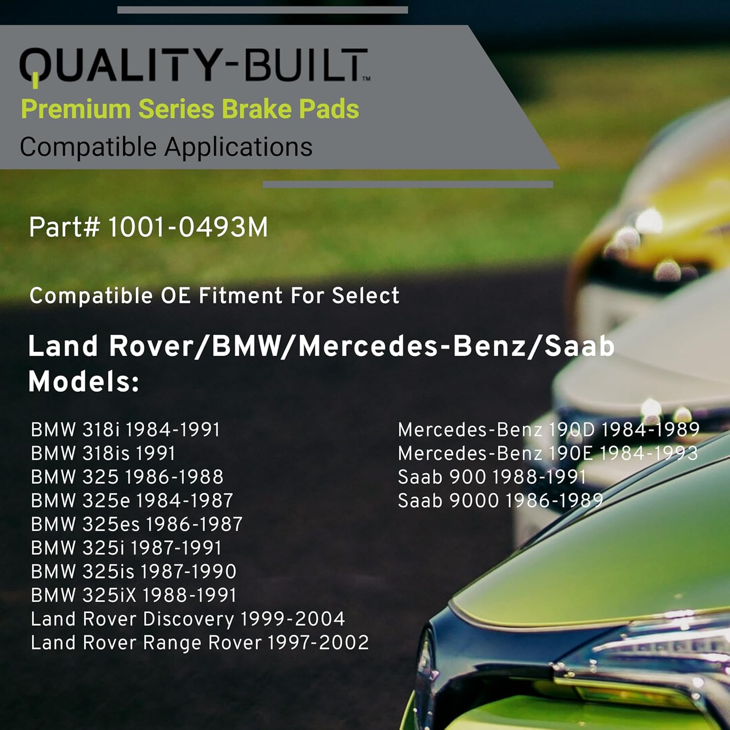 Premium Semi-Metallic Front Brake Pads (1001-0493M) Compatible with 1984-2004 BMW/Land Rover/Mercedes-Benz/Saab (190D/190E/318i/318is/325e/325es/325i/325is/Discovery/Range Rover & More)