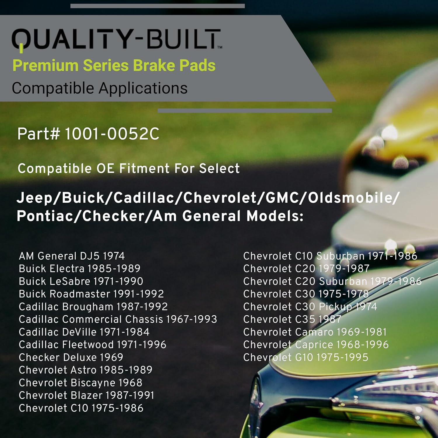 Premium Ceramic Front Brake Pads (1001-0052C) Compatible with 1967-2002 Buick/Cadillac/Chevrolet/GMC/Jeep/Oldsmobile/Pontiac (C10/C1500/C20/C2500/C30 Pickup/C35/Camaro & More)
