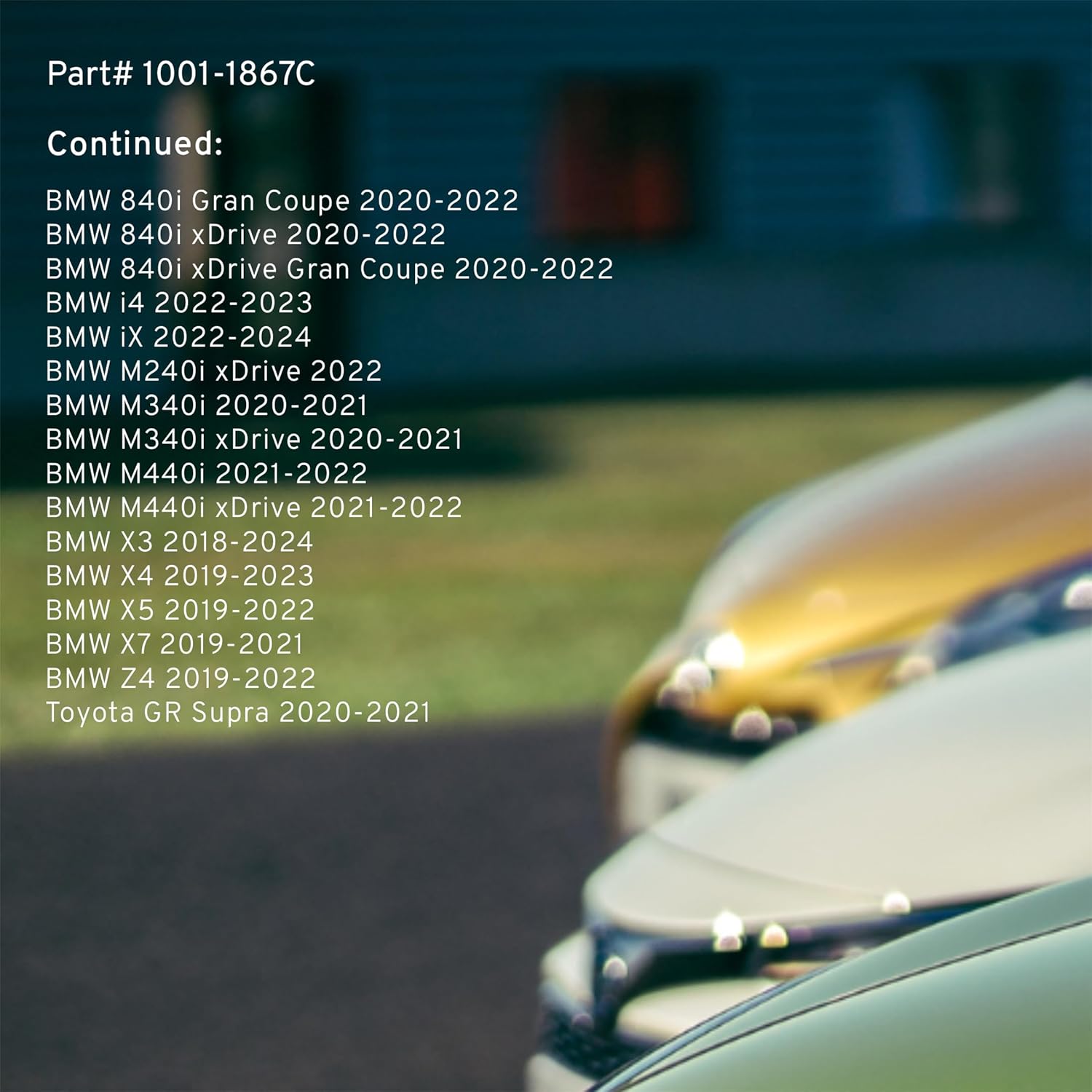 - FITMENT LIST: Select Models 2016-2024 BMW/ TOYOTA (1001-1867C) Verify Fitment using AmazonConfirmedFit tool.