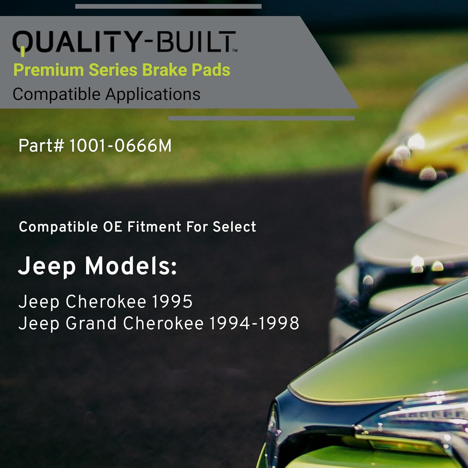 Premium Semi-Metallic Rear Brake Pads (1001-0666M) Compatible with Jeep Cherokee 1995-1995, Jeep Grand Cherokee 1994-1998