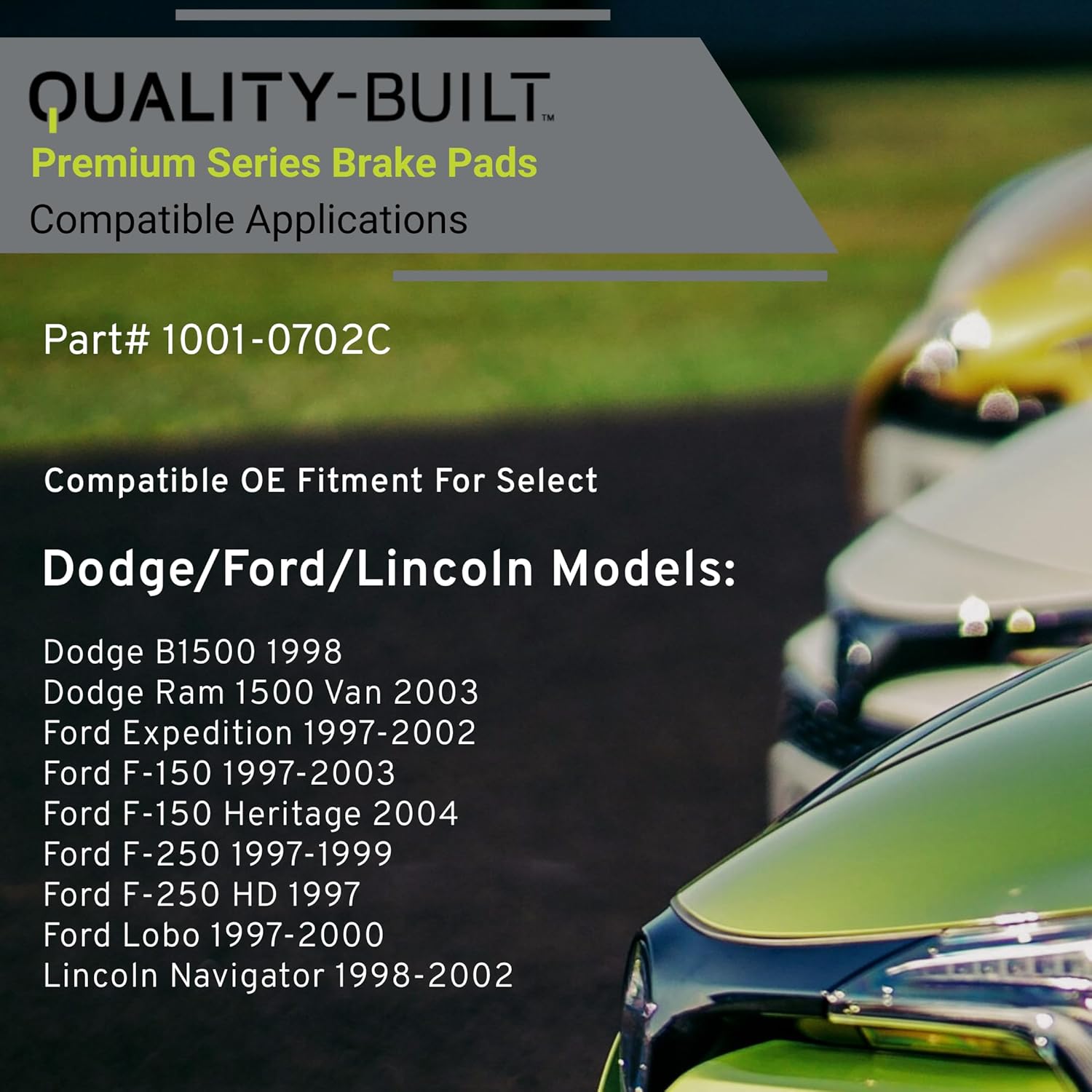 - VEHICLE FITMENT LIST: Dodge B1500 1998, Ram 1500 Van 2003, Ford Expedition 2002-1997, F-150 2003-1997, F-150 Heritage 2004, F-250 1999-1997, F-250 HD 1997, Lobo 2000-1997, Lincoln Navigator 2002-1998 (PART#1001-0702C)