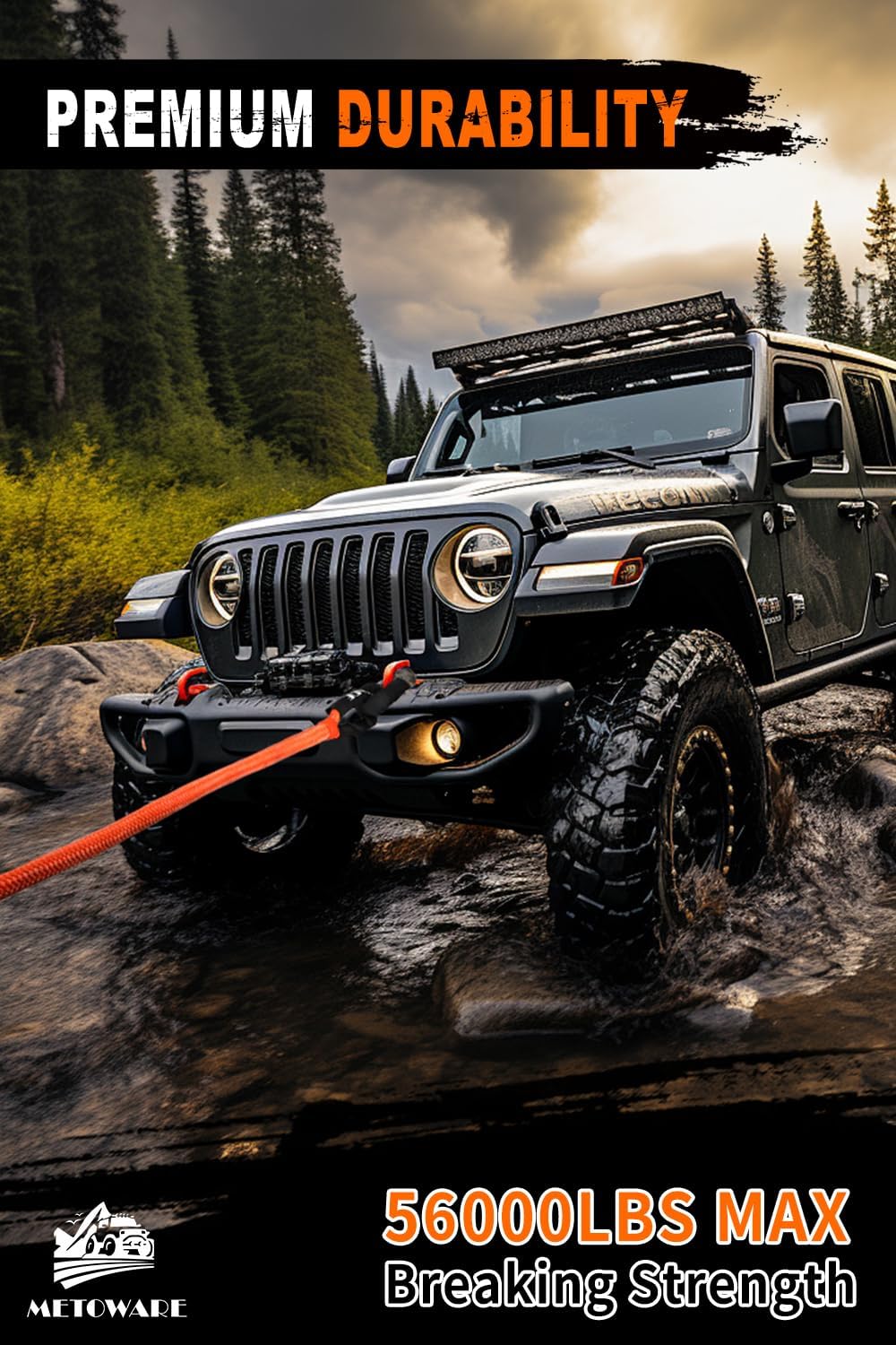 - DURABLE AND RELIABLE: Engineered for extreme durability, the elastic recovery rope absorbs kinetic energy to reduce shock loads, while its ultra-high 56,000lbs breaking strength ensures reliable performance for UTVs, trucks, tractors, and other heavy-duty vehicles.