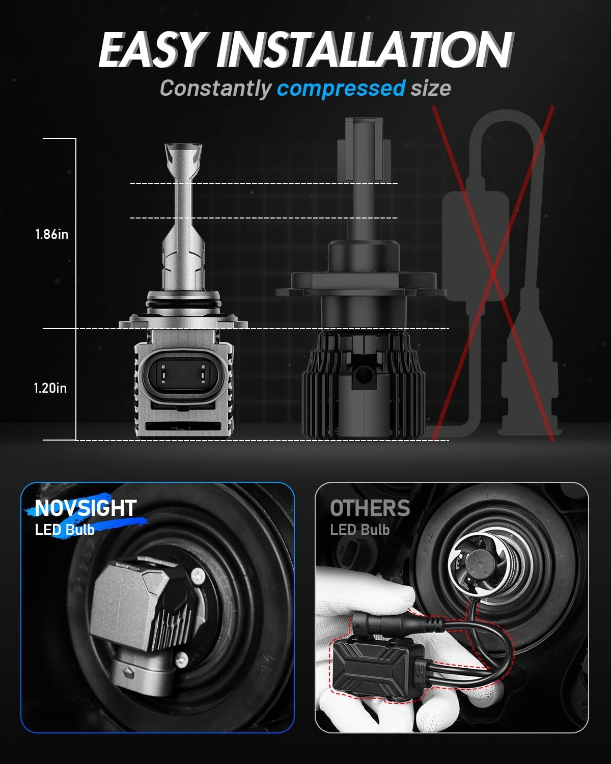 NOVSIGHT 9005 9006 LED Fog Light Bulbs,100000 Lumens 6500K Cool White Light,800% Brightness,Plug and Play, Pack of 4