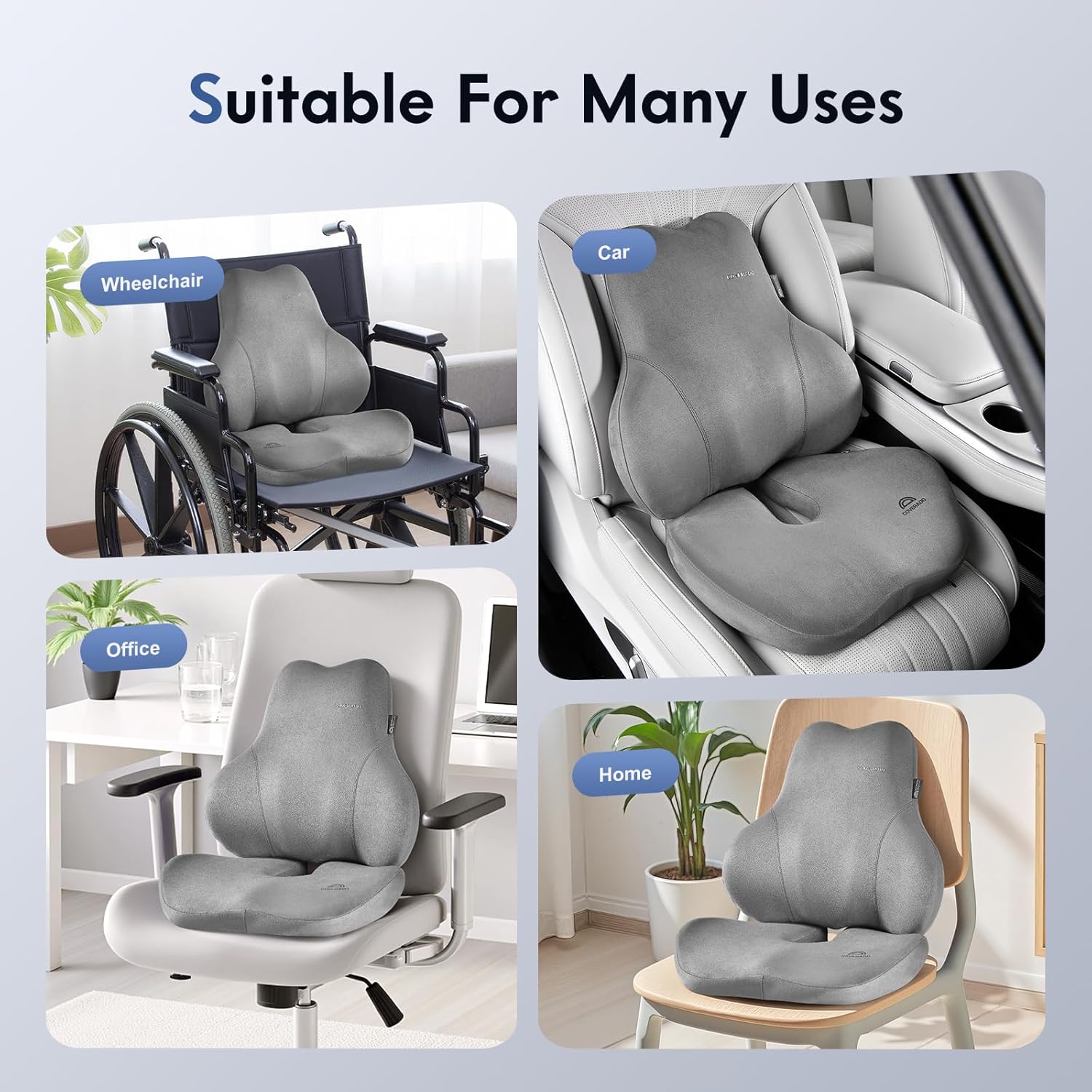 - Universal Compatibility:This seat cushion and lumbar support set is highly versatile, not only for car seats, but also for office chairs, wheelchairs and other seat scene. So, no matter where you need to sit, you can enjoy the comfort and support provided by this set