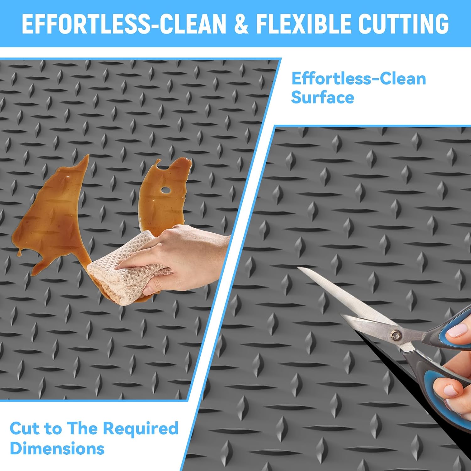 - Anti-Slip & Effortless-Clean Surface: The raised diamond pattern of our garage floor mats provides excellent grip, keeping pedestrians and parked vehicles safe even in wet conditions. Stains on the surface of the floor mat are easy to clean.