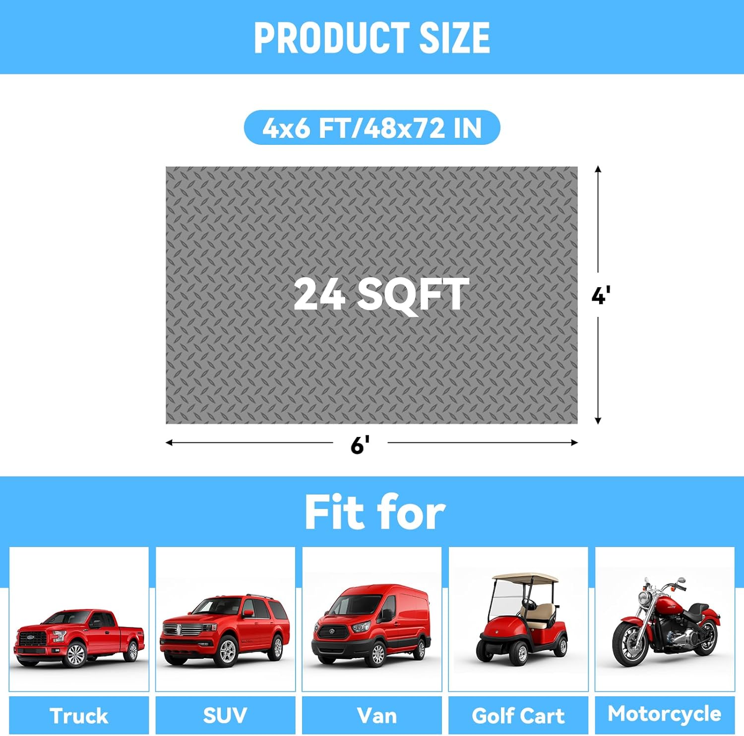 - Widely Application: Our garage floor mats for under car enhances your garage's appearance while protecting your floor. Perfect for trucks, trailers, SUVs, Van, Golf Cart, Motorcycle, RVs, it installs easily - simply lay it flat and secure the edges with tapes.
