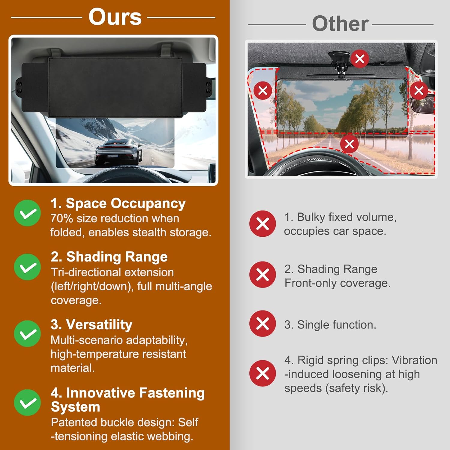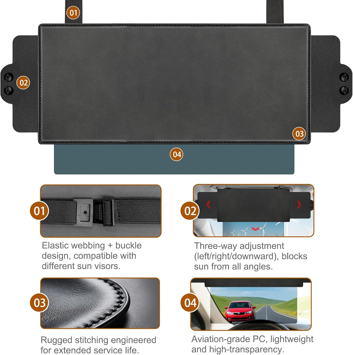 - ă5-Second Tool-Free Installation & Premium Supportă Upgraded slide-track mechanism + 40% longer reinforced straps of sun visor extension enable instant mounting. It's ideal as safety-focused gifts for your family and friends. Any questions will be responded within 24 hours.