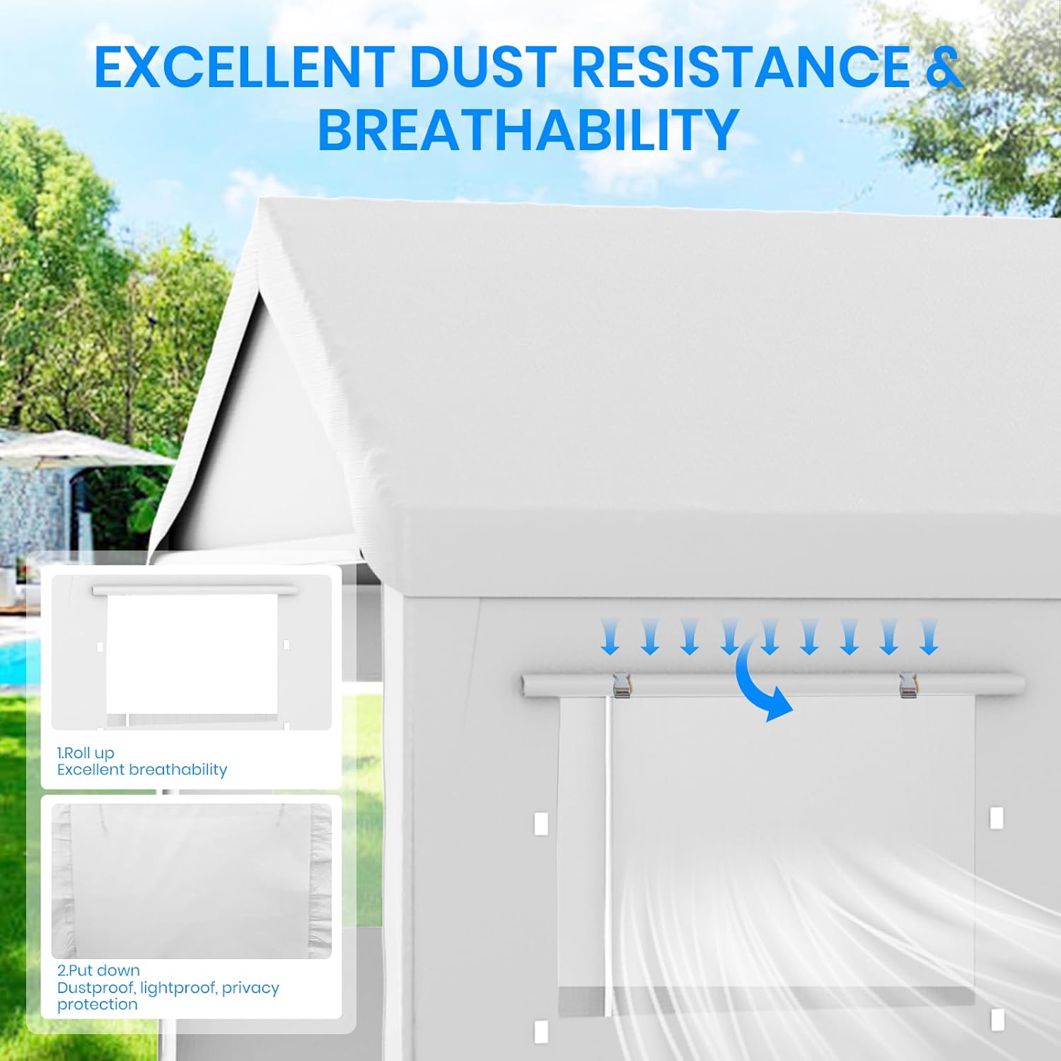 Carport 10x20 FT Heavy Duty, Outdoor Portable Garage with Removable Sidewalls & Doors, Waterproof, UV-Resistant Canopy Shelter for Vehicles, Boats, RVs, Trucks, All-Season Car Port,White