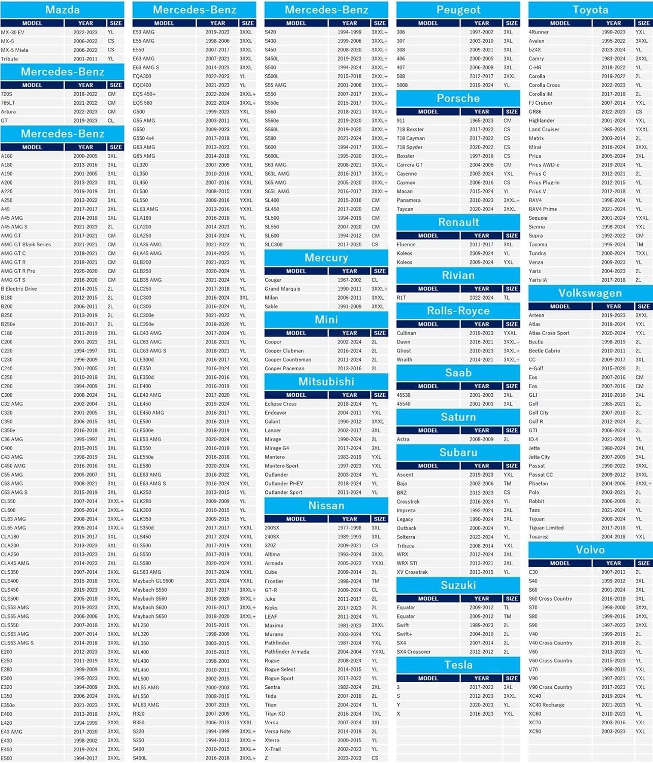 - Warm Reminder: Please check the car details before you order our cover; Date of manufacture; Car total length. NOTE: CL size without door zipper in the left or right of the cover.