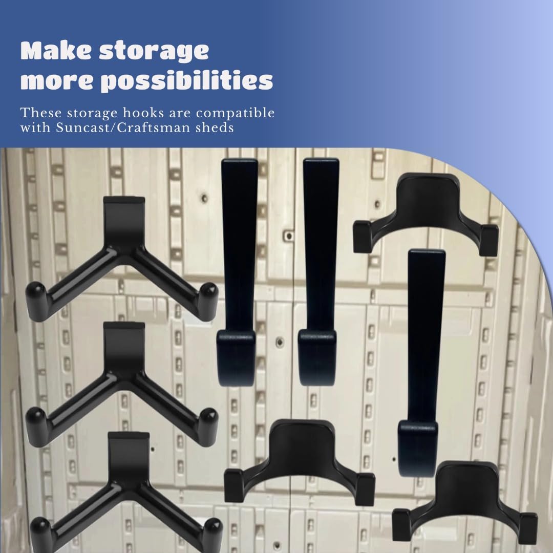 - Compatibility: Compatible with Suncast and Crafstman sheds and suitable for most brands of sheds, these storage hooks ensure secure and precise installation, adding an extra layer of functionality to the shed with minimal effort.