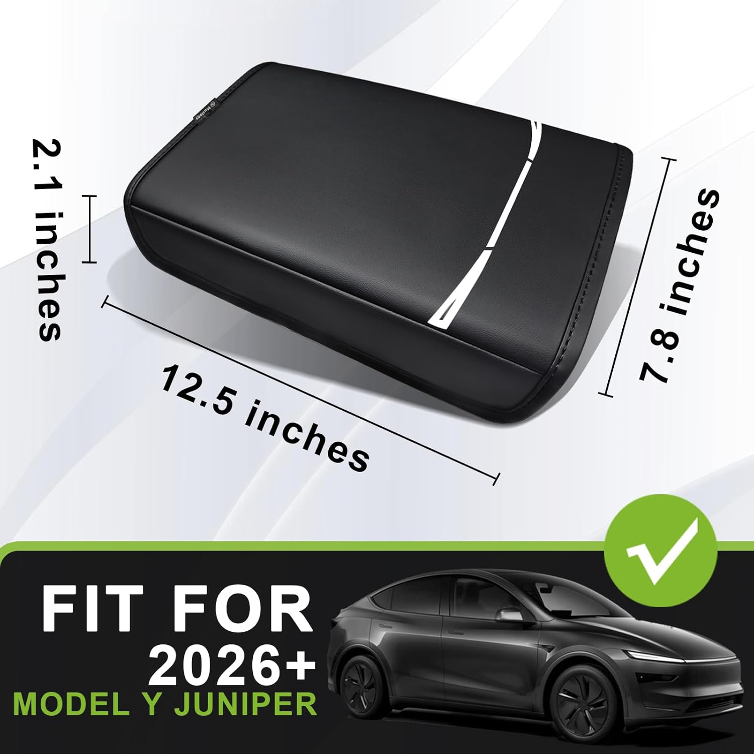 Muslogy Center Console Armrest Cover Compatible with Tesla Model Y Refresh 2026 Comfort Armrest Pad Arm Rest Cushion Vegan Leather Protector Regular Thick (25+ |Juniper| Black, Regular)
