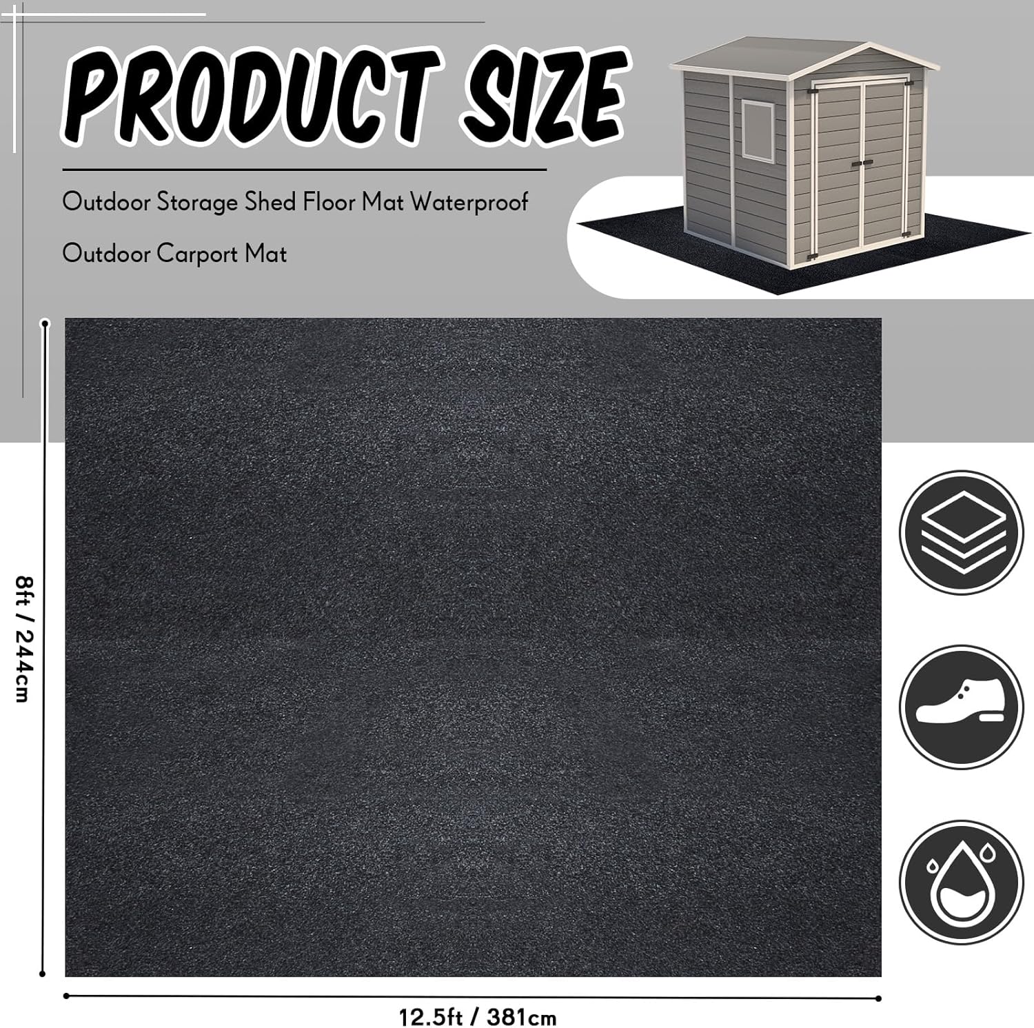 - Package Includes: you will receive 1 piece of outdoor storage shed floor mat, each measures approx. 8 x 12.5 ft / 244 x 381 cm, which can not only protect the outdoor storage shed from being eroded by damp ground, but also help keep your outdoor storage shed clean, bringing much convenience to you