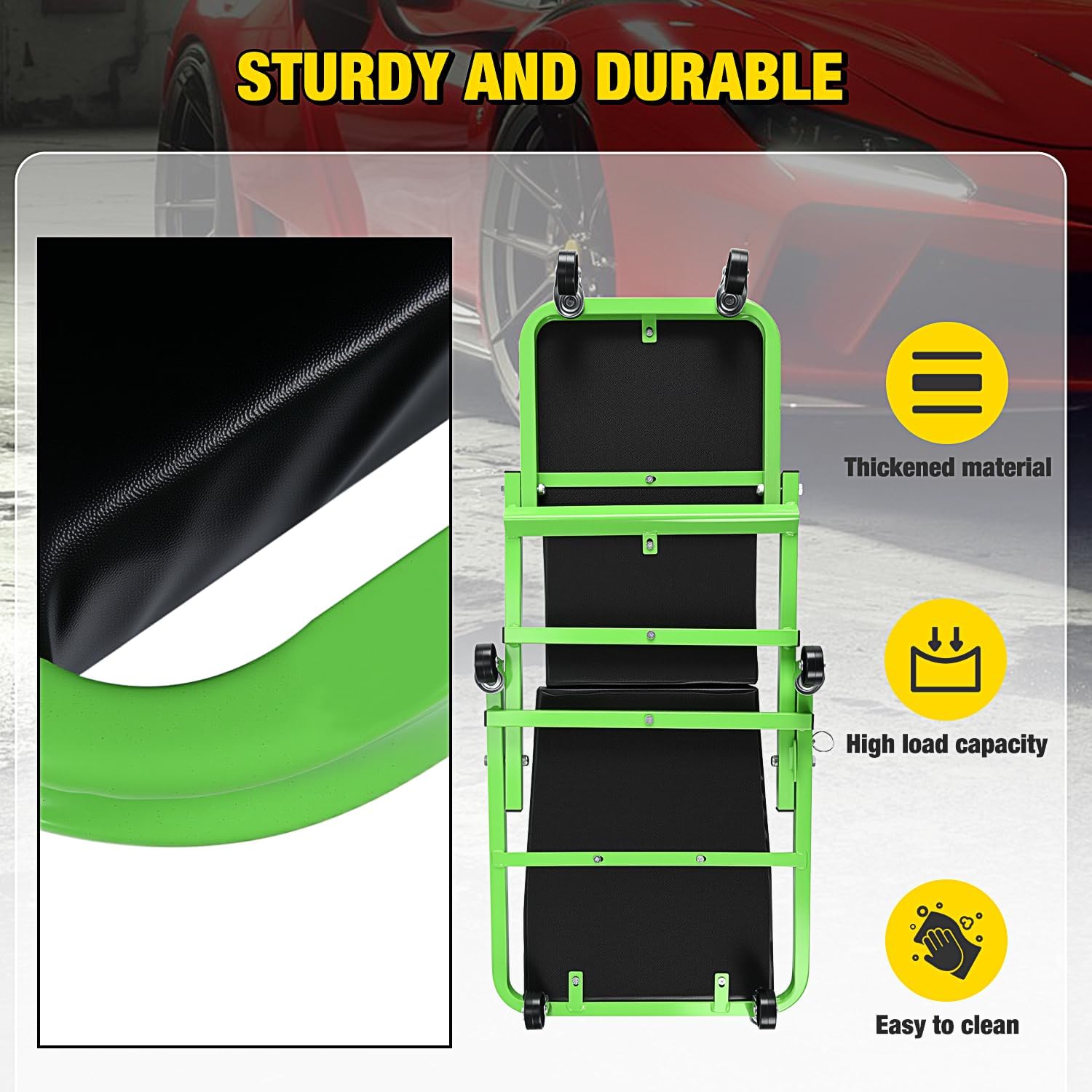 - Rugged Construction Our Garage Shop Creeper is designed with a heavy-duty steel frame for strength and durability. Standing the test of time, they provide long-lasting performance and reliability.