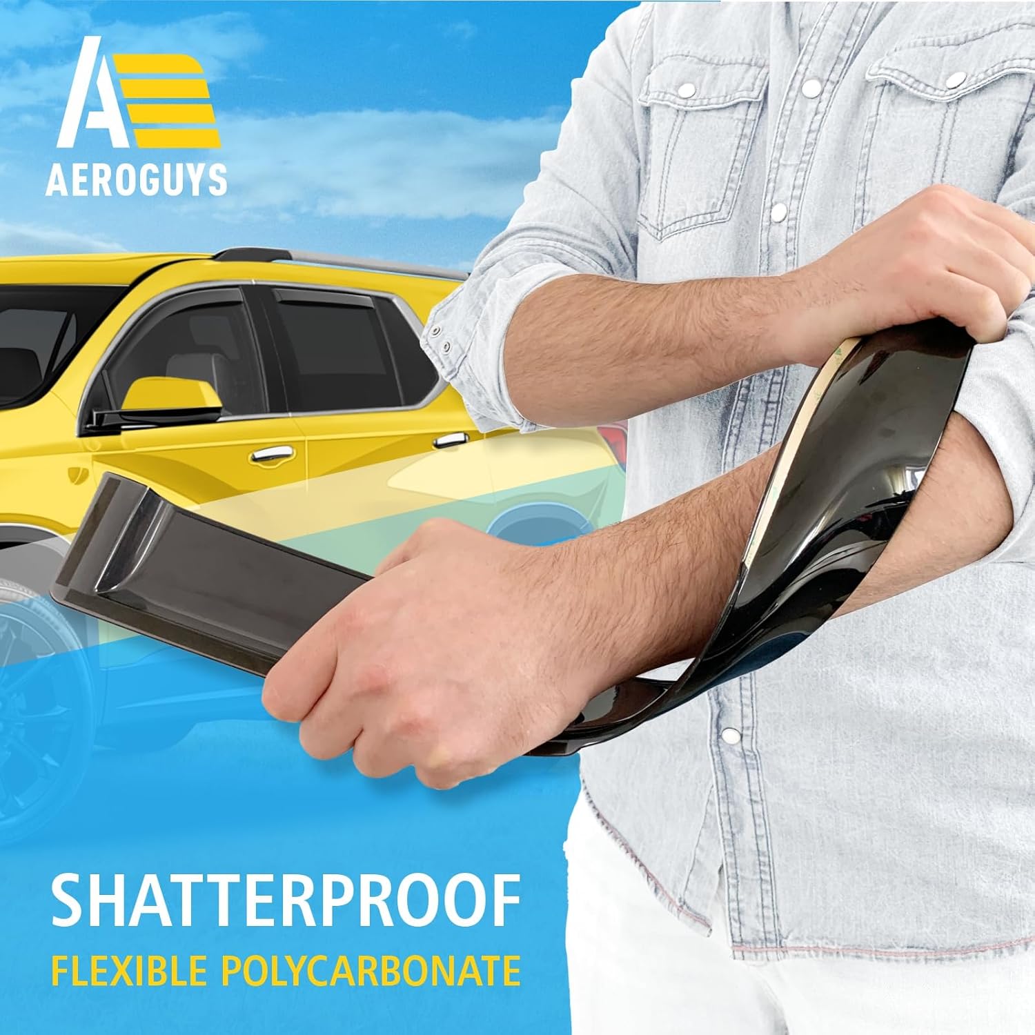 - Incredibly Durable AEROGUYS Auto Window Deflectors β They are made with strong and tough polycarbonate which is clear and scratch-resistant. They also provide UV protection making your ride more comfortable under all weather conditions.