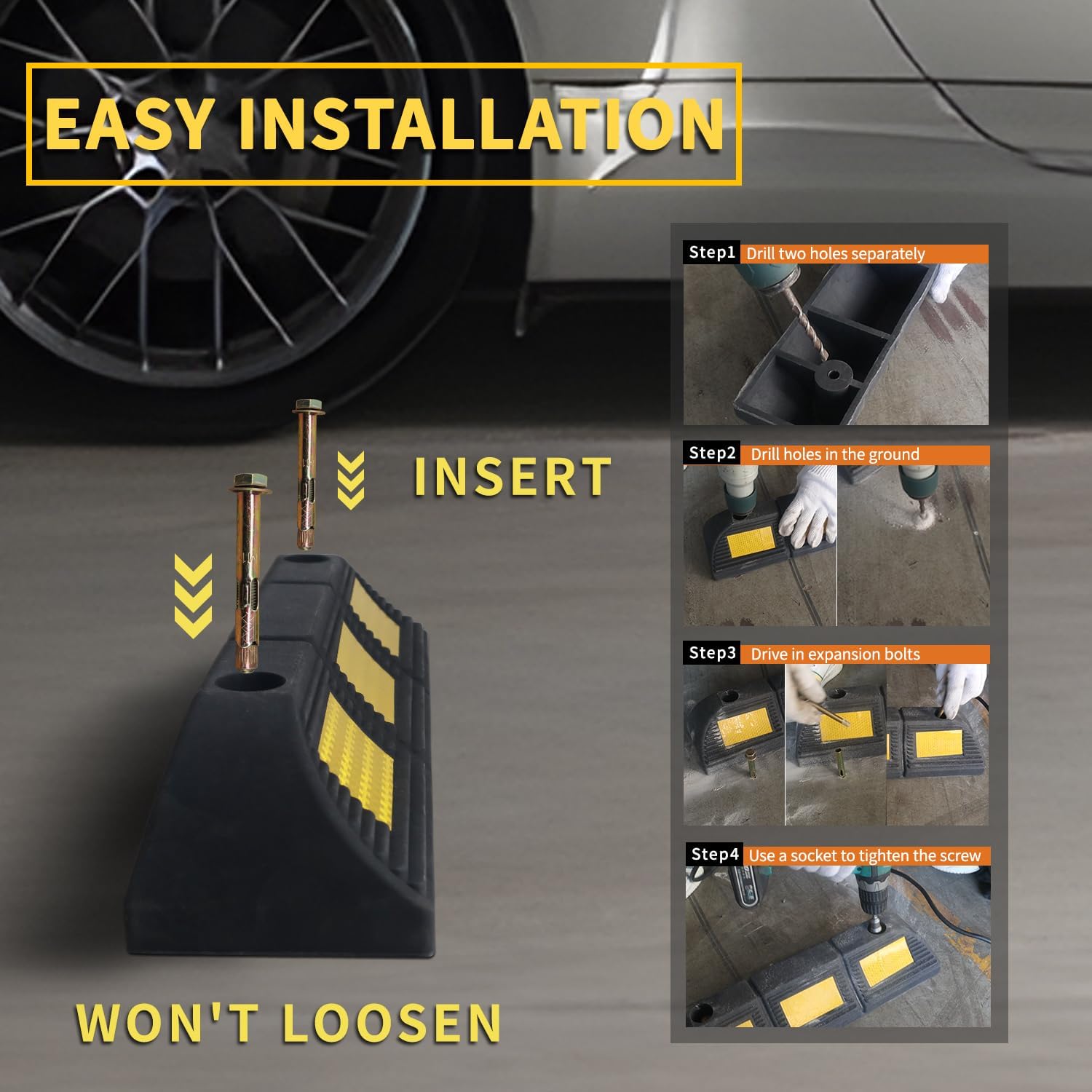 - đ§ ăQuick and Simple Setupă To install, please refer to the INCLUDED VIDEO GUIDE and drill holes beforehand. Once aligned, secure the stopper using the 4 provided screws for a firm hold.