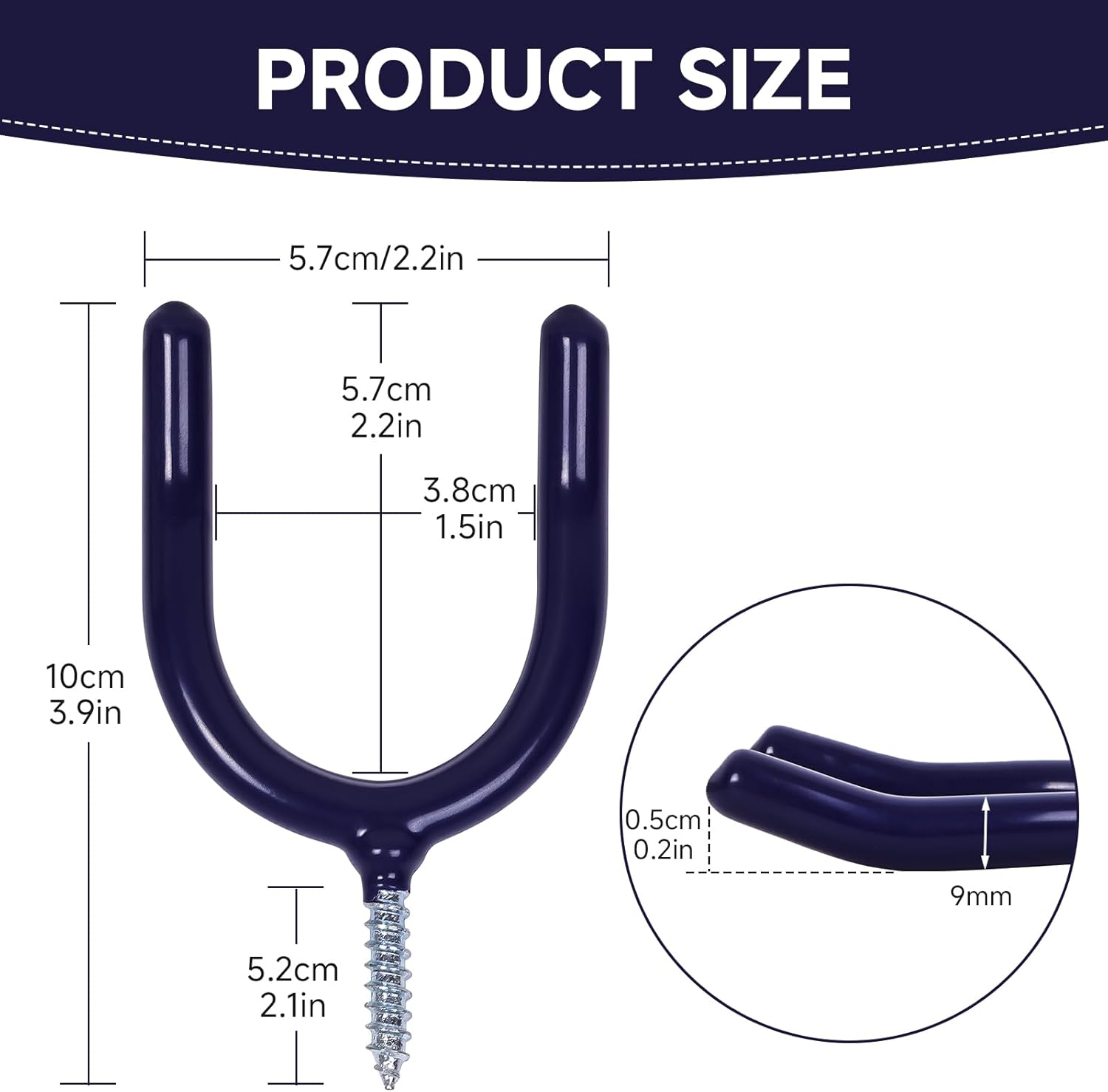 12 Pack Garage Storage System Steel U Hooks with Anti-Slip Coating Home Improvement and Organization Screw in Hooks Easy Wall Mounting Heavy Duty Bike and Ladder (Blue, 12 Pack)