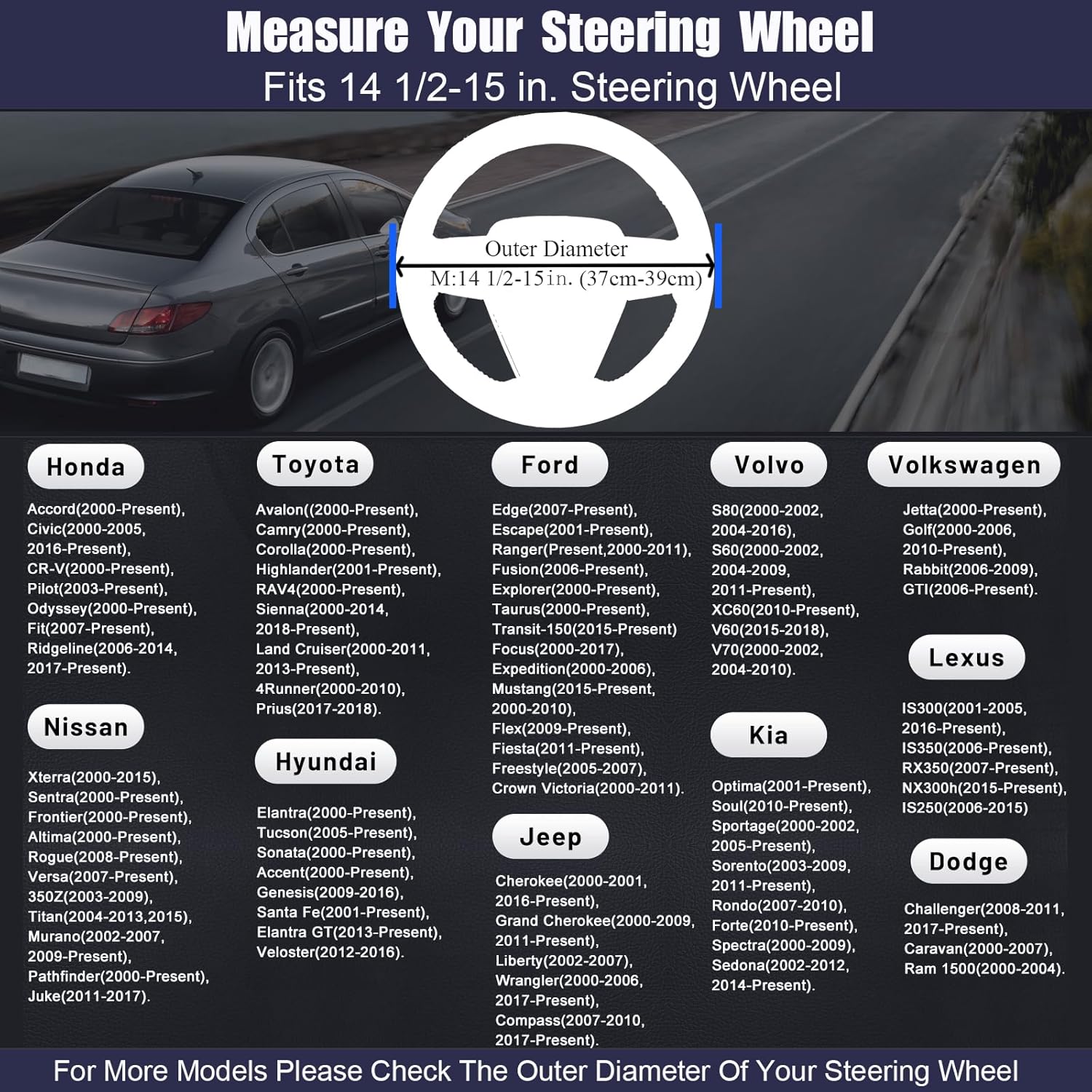 - All-Season Comfort: This cover is designed to restore the original grip of your steering wheel, avoiding the bulkiness and slipperiness often associated with aftermarket covers. It protects your hands from extreme temperatures, ensuring comfort year-round, whether in the heat of summer or the chill of winter.