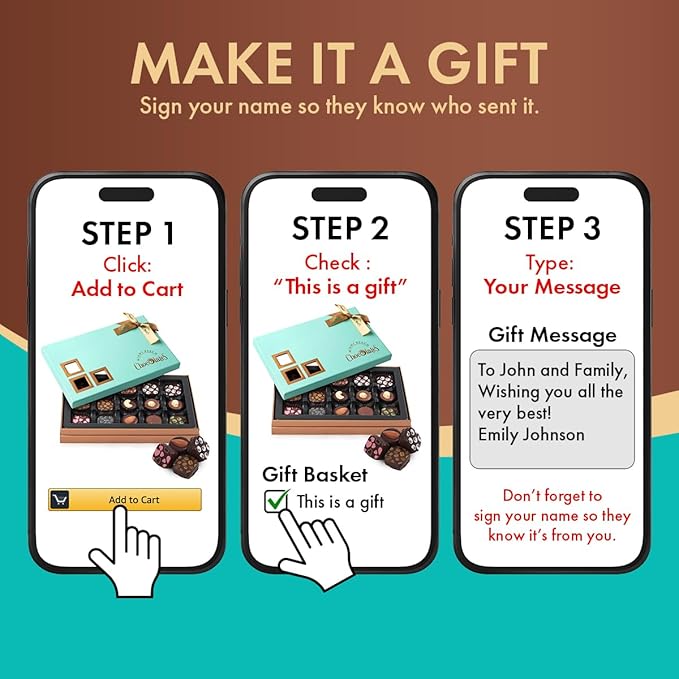 - Versatile Chocolate Gift Box: This premium chocolate gift box is more than just a sweet treat, it’s a statement of style and taste. Whether you’re celebrating a holiday or expressing appreciation, this chocolate gift makes a perfect gesture. Each chocolate dark creation is handcrafted to delight with smoothness, making it an unforgettable chocolate gift for anyone with a love for chocolate.