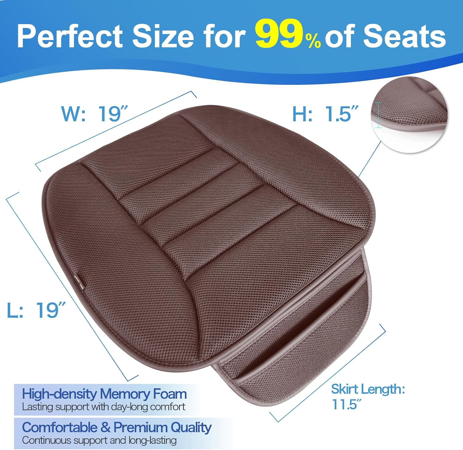 Premium Car Seat Cushion, Driver Cushion with Comfort Memory Foam & Non-Slip Rubber Bottom, Car Seat Pad Works with 95% of Vehicles and Office Chair or Home - 4D Brown