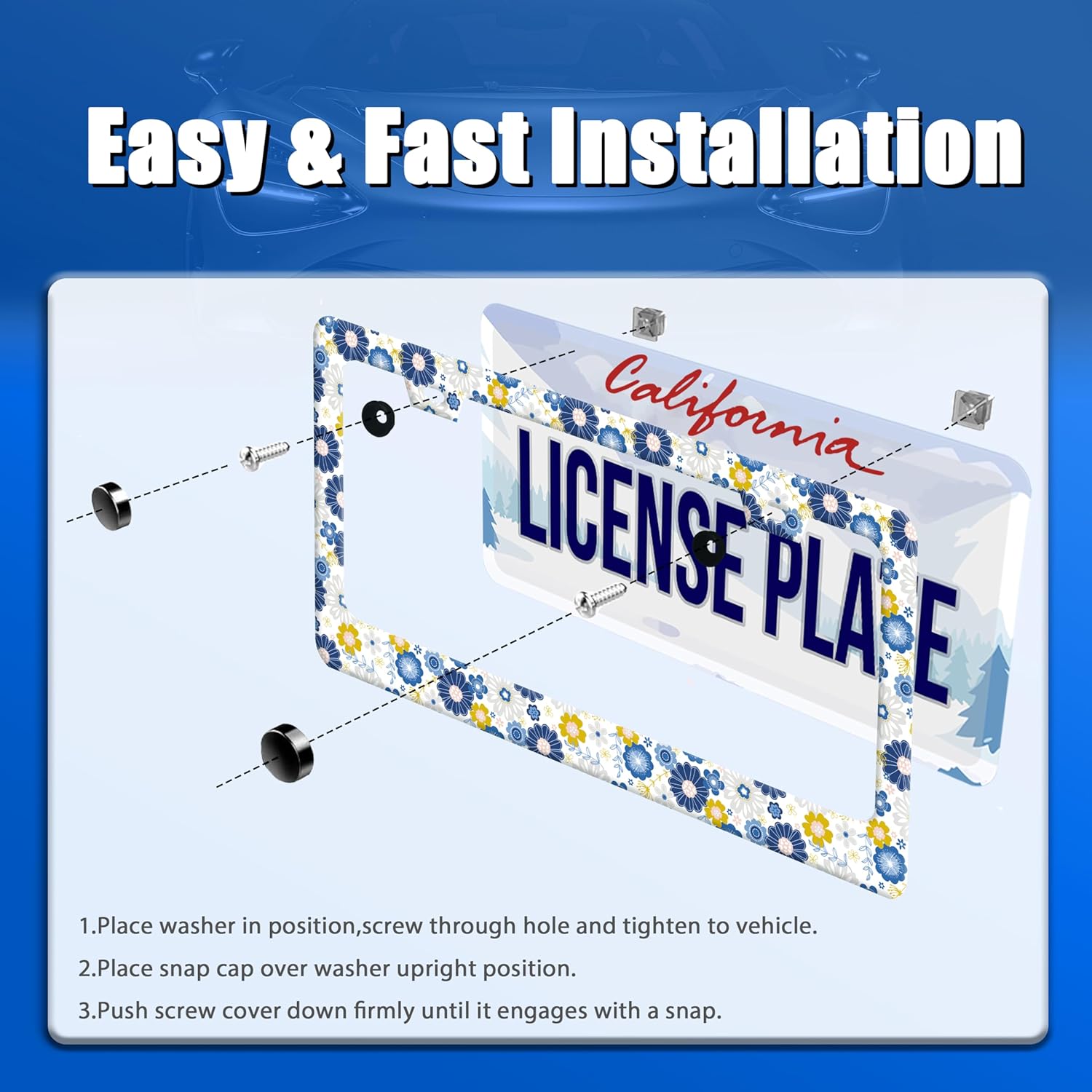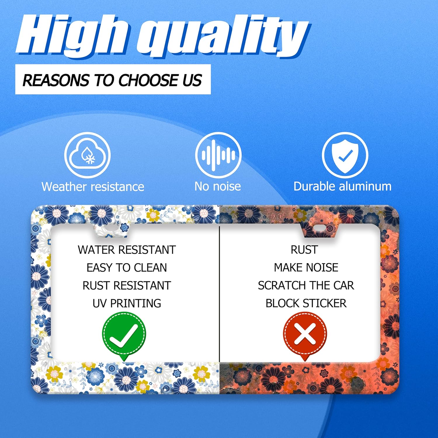 White Blue Hippie Flowers License Plate Frame Colorful Floral License Plate Holder Funny Car Accessory Decoration 12.3"x6.3" for Women