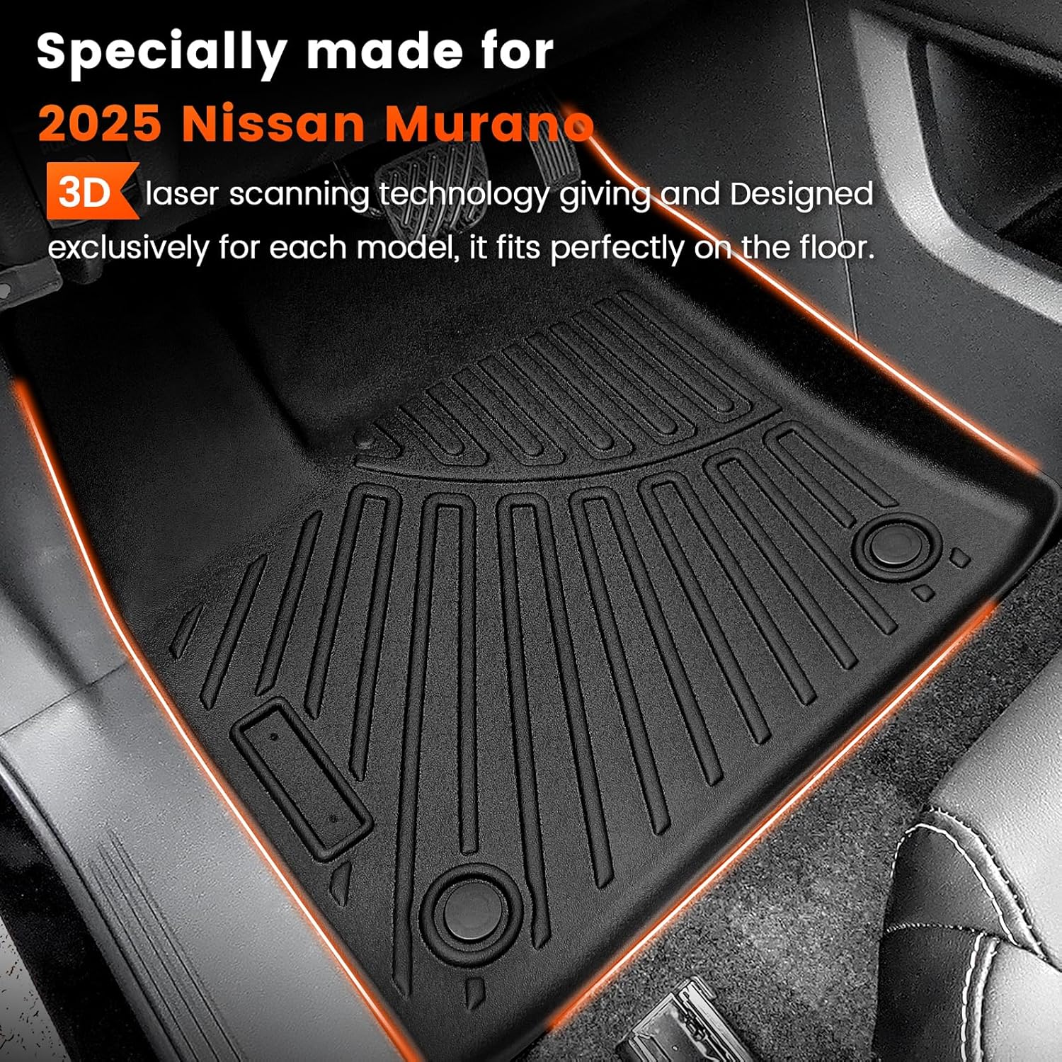 - ăPerfect Custom Fită Designed EXCLUSIVELY for Nissan Murano 2025, no trimming needed. 3D laser-measured to cover every contour of your vehicle floor,ready to use Immediately.Note: Remove the original pad during installation.If the mat has creases, just expose it to the sun for an hour or two to smooth it out, or use a hair dryer to heat it up. In cold weather, use hot water to restore it.