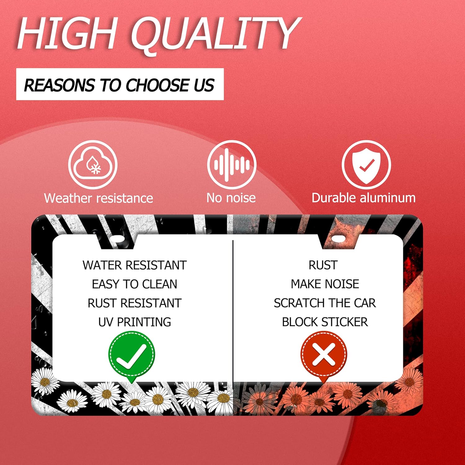 Sun License Plate Frame Black White Daisy Flowers License Plate Frames Funny Auto Accessories Bracket Stainless Steel License Plate with Screw 6x12 Inch