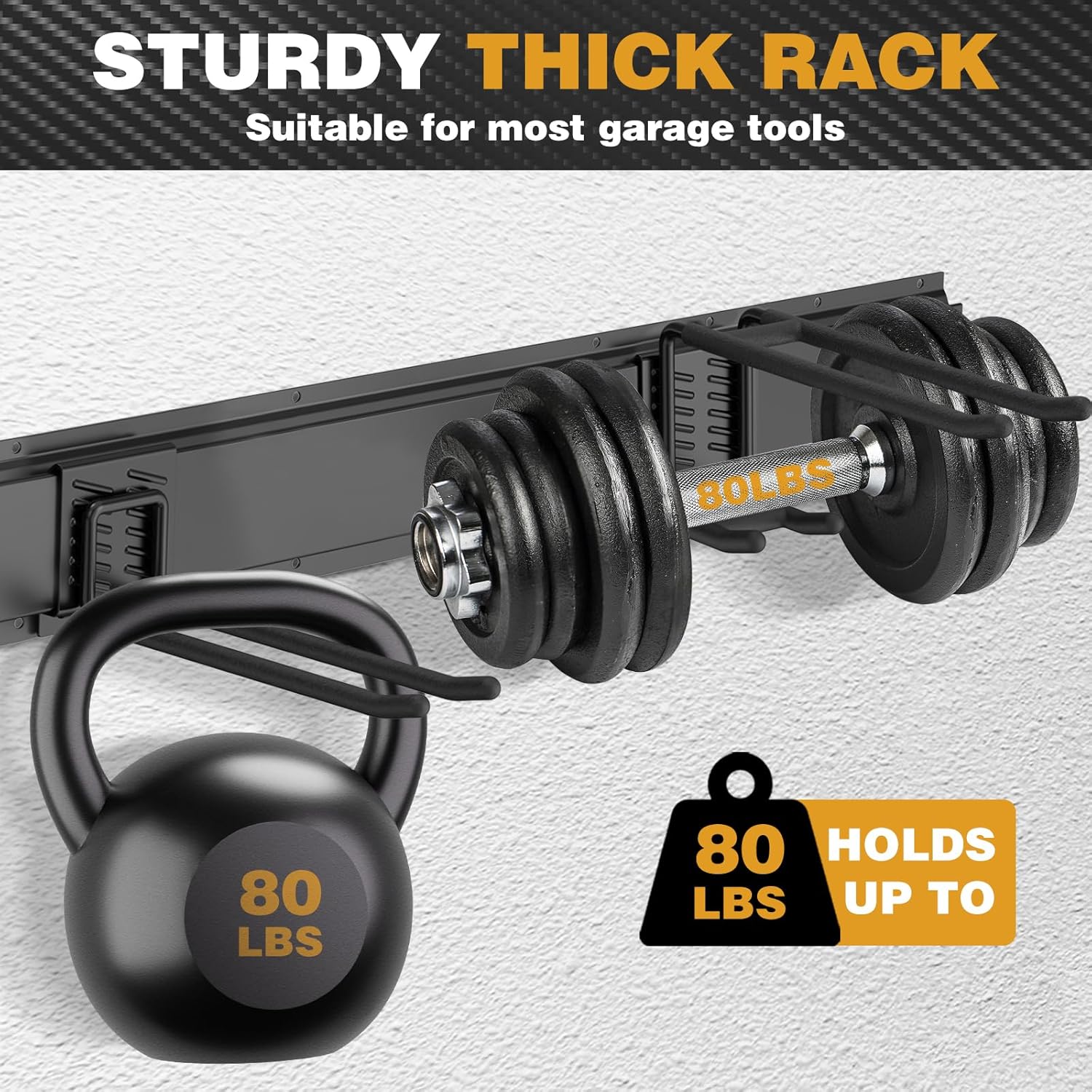- HEAVY-DUTY CAPACITY: Wall-mounted storage rack supports up to 480 pounds of tools and equipment, perfect for garage organization and storage needs