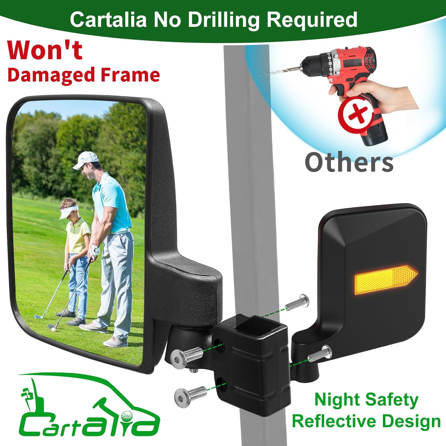 Golf Cart Mirrors Kit for EZGO Club Car Yamaha, No-Drilling Night Safety Reflective Design Golf Cart Side Mirror and Rear View Mirror Kit Universal Foldable and Adjustable Rotatable HD Glass