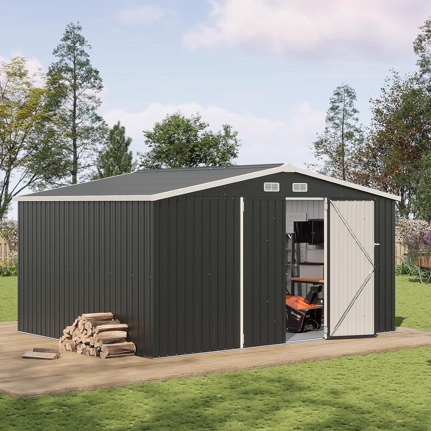 Aoxun 12x10 FT Shed Metal Outdoor Waterproof Storage Shed Steel Utility Garden Tool Shed with Door & Lock Outdoor Storage for Garden Patio Lawn Poolside, Black