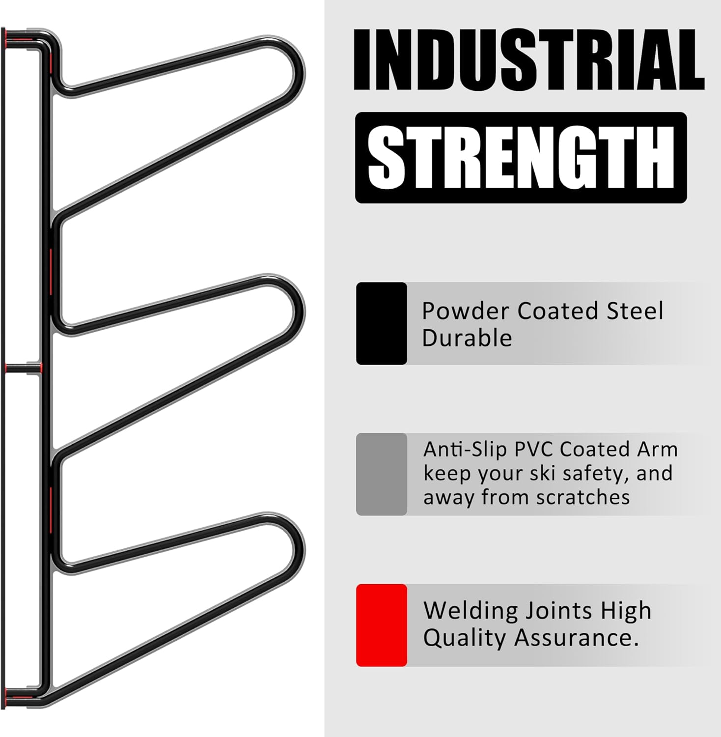 - Multifunctional Use: The ski storage rack holds up to 3 pairs of skis, The two side pieces can be mounted at any width to meet your need. Fits for all mountain skis, kids skis, and most skis. It can be mounted to virtually any solid surface, indoors and outdoors