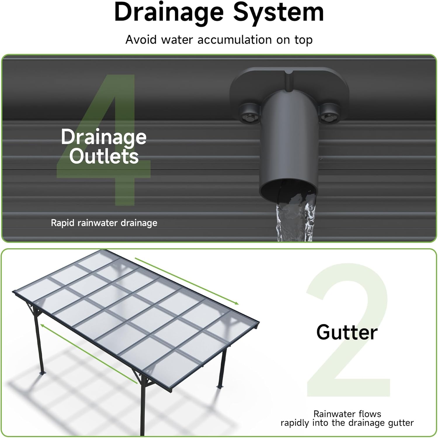 - 4 Drainage Hole System: Having a carefully designed pitched, our carport guarantees unobstructed water runoff, minimizing roof pooling and leakage risks