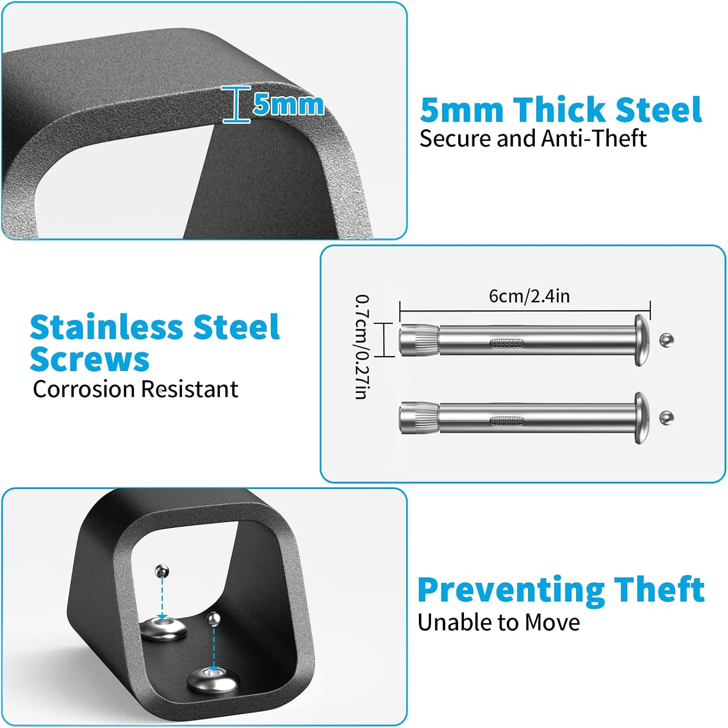 - 【Unique Steel Ball Anti-Theft System】 After installing, insert the included steel balls into the screw holes to lock down the anchor—prevents thieves from unscrewing or prying it loose, ensuring complete security.
