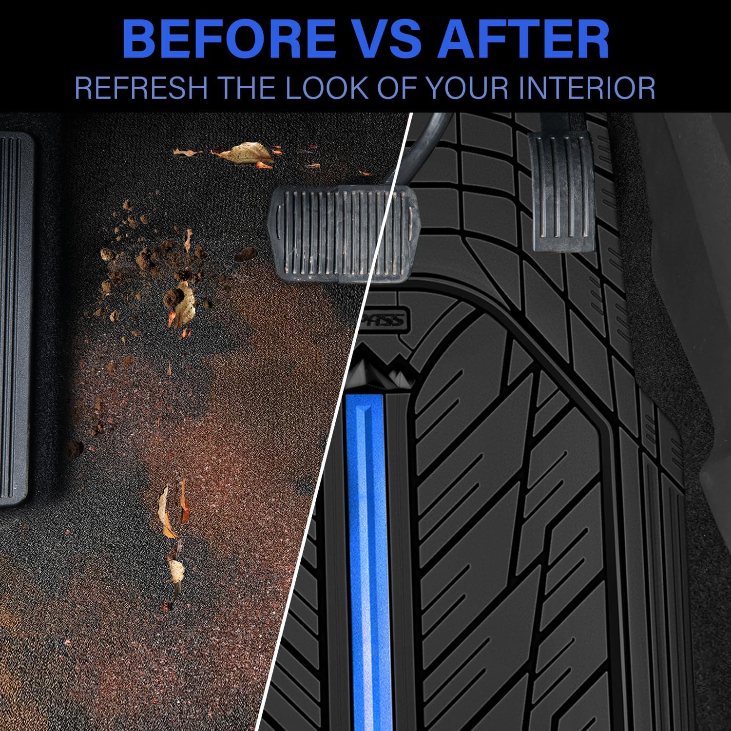 CAR PASS Metal Medium Rubber Floor Mats for Car Heavy Duty Car Mats All Weather, Universal Trim to Fit for Truck SUV Vehicle Automotive Floor Mats, Waterproof Car Mats 4 Piece Black Bule