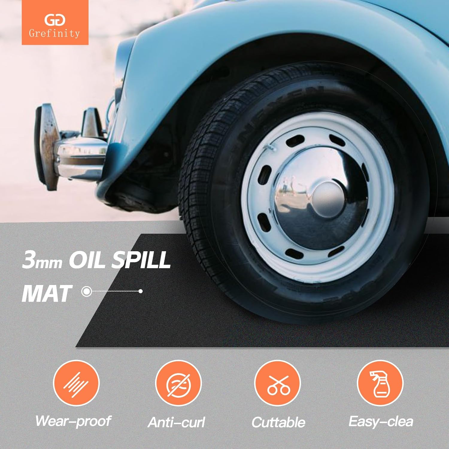 6.6'x 8.5' Garage Floor Mat & Oil Spill Mat, Heavy Duty Under Car Mat for Garage & Driveway, Protects Against Oil, Chemicals & Stains with TPE Anti-Leak Backing, Reusable & Washable