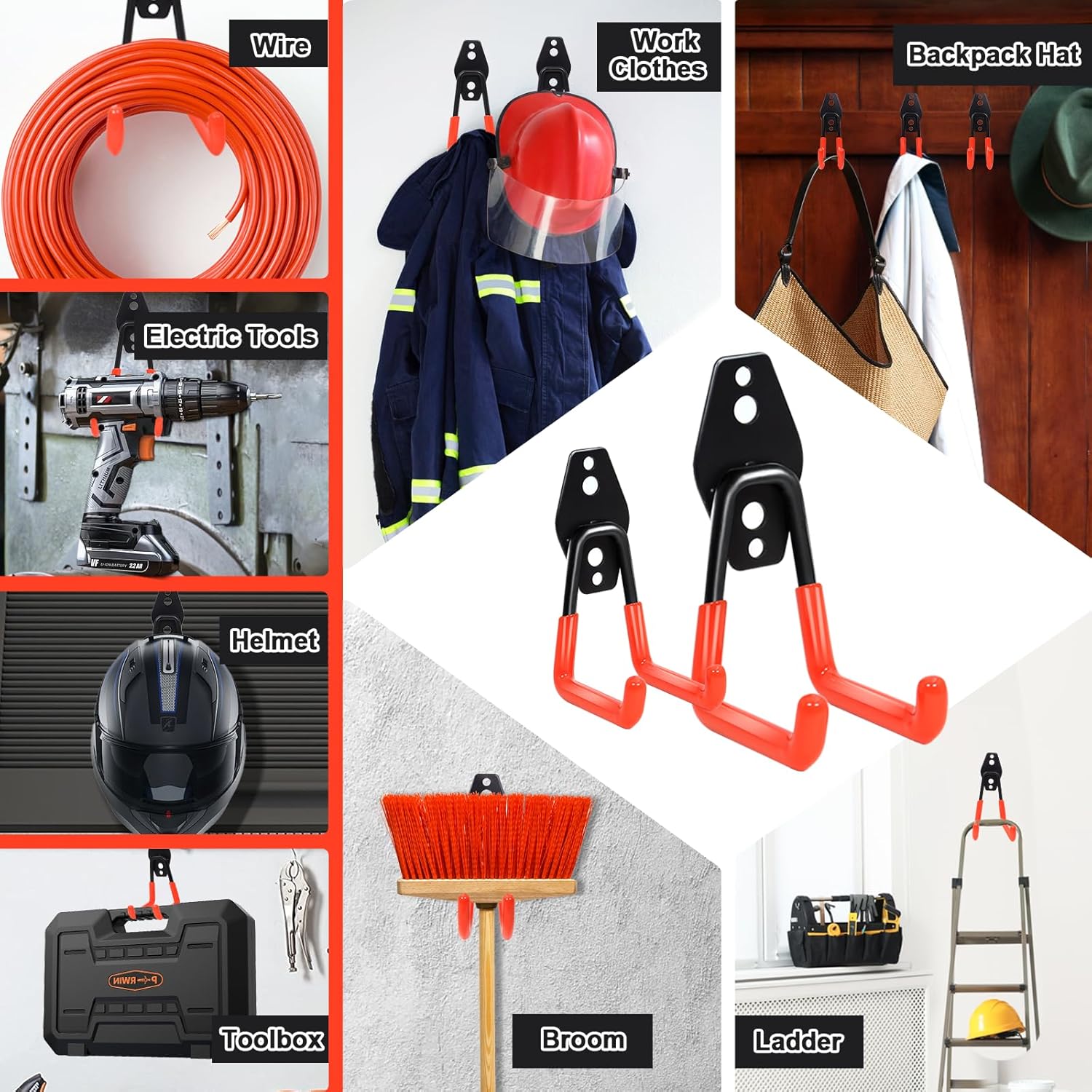 - ✿【HEAVY DUTY DESIGN】: The garage wall hooks are crafted from durable steel metal, designed to withstand heavy loads(👍approx up to 80lb), making them ideal for organizing garage tools, sports equipment, or any other items that need a secure hold. With these high-quality heavy duty garage hooks,you can say goodbye to clutter and hello to a more organized and functional space.