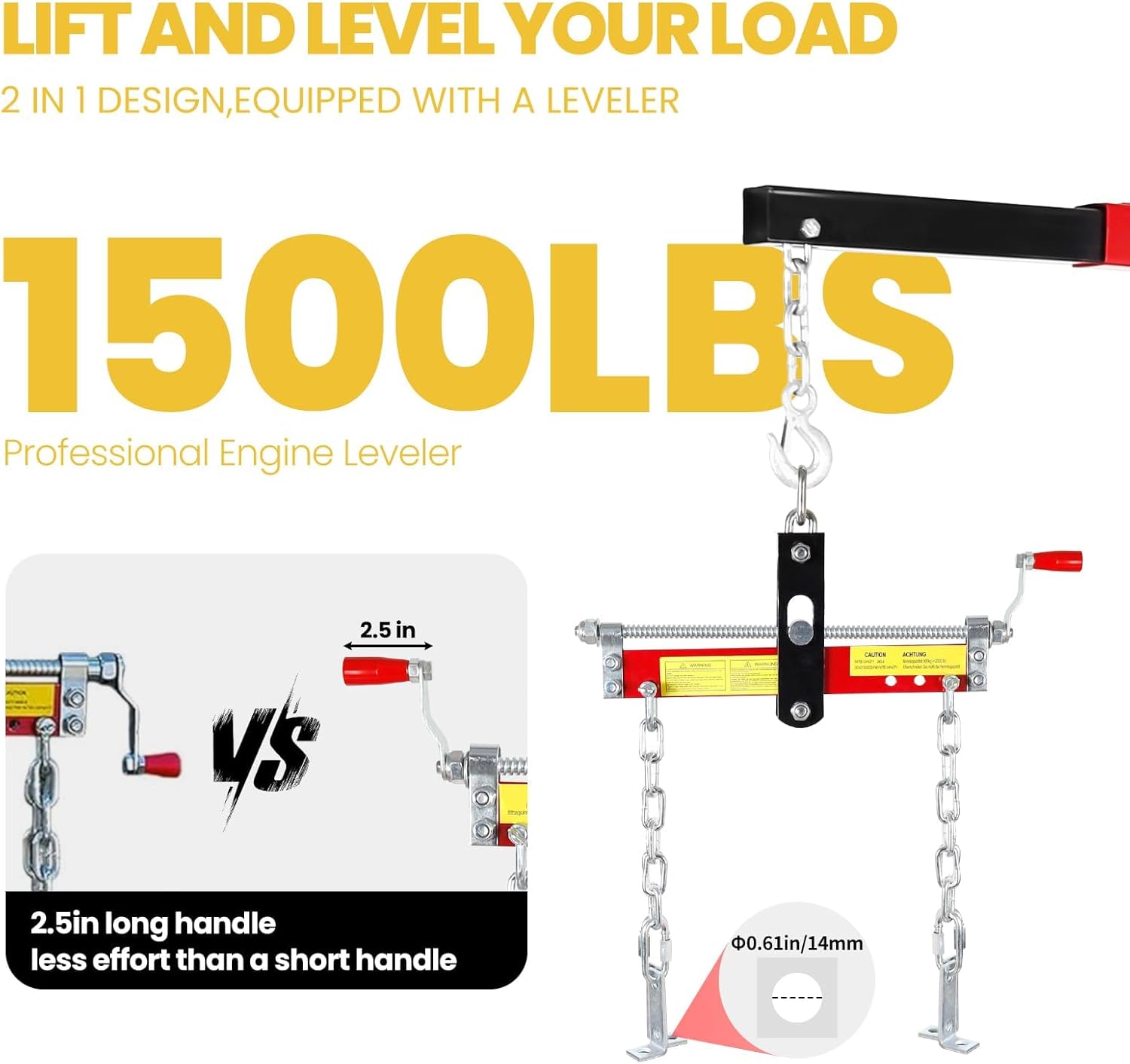 - 【Wide Applications】Multi-Scene Versatility – Ideal for auto repair shops, farms, docks, and warehouses, this engine hoist effortlessly lifts transmissions, generators, and cargo. A go-to tool for mechanics and DIY enthusiasts alike!