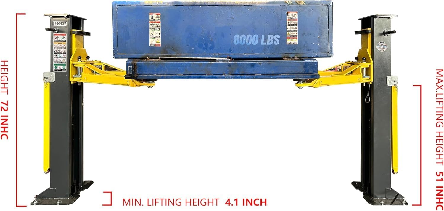 - Handle vehicles up to 7000 lbs with ease β ideal for most sedans, SUVs, crossovers, and light trucks. Get professional-level lifting capacity in a surprisingly portable and space-efficient two-post design. (Depending on the vehicle model, the specific size diagram of the lift needs to be checked)