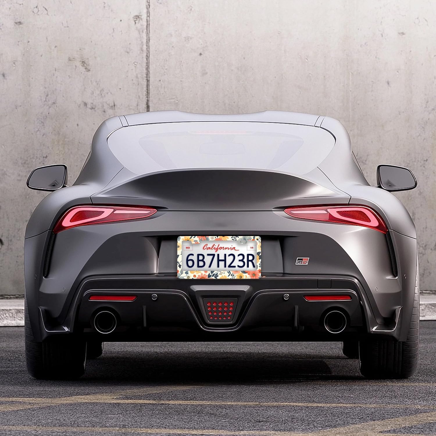 Colorful Floral Flowers License Plate Frames - 2 Pcs Set 2 Holes Stainless Steel Metal Auto Car Accessories Decoration License Plate Frame Cover Size 6.3" x 12.2" Fit US Vehicles for Women Men Gift