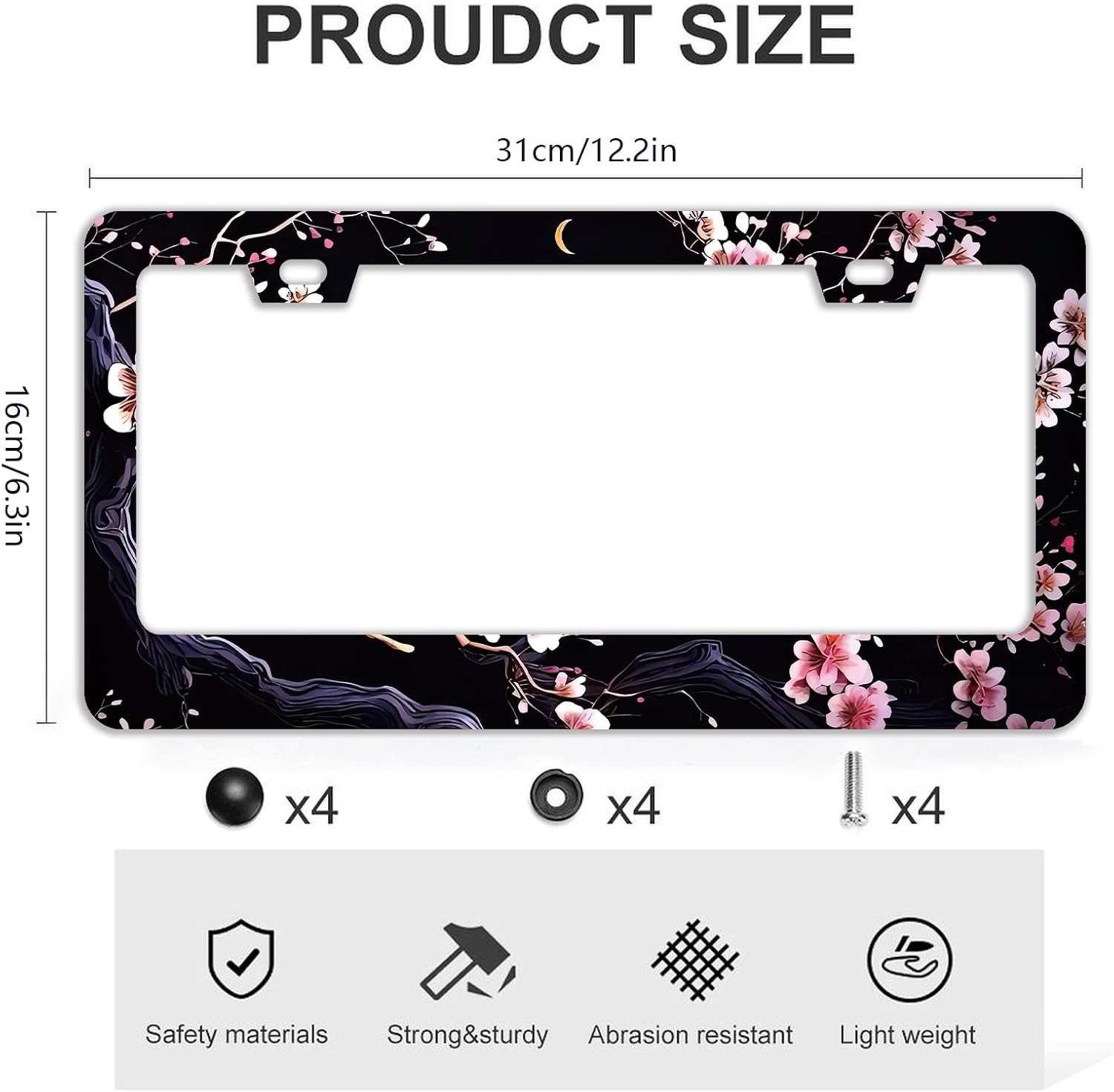 Watercolor Cherry Blossom License Plate Frames - 2 Pcs Set 2 Holes Stainless Steel Metal Auto Car Accessories Decoration License Plate Frame Cover Size 6.3" x 12.2" Fit US Vehicles for Women Men Gift