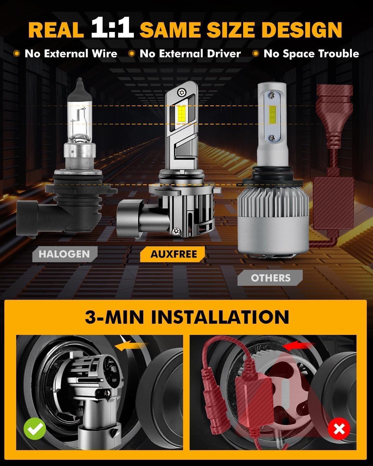 Auxbeam 9006 Fog Lights, 600% Brighter Wireless 9006 Light for Off-Road Use or Fog Light, Plug and Play