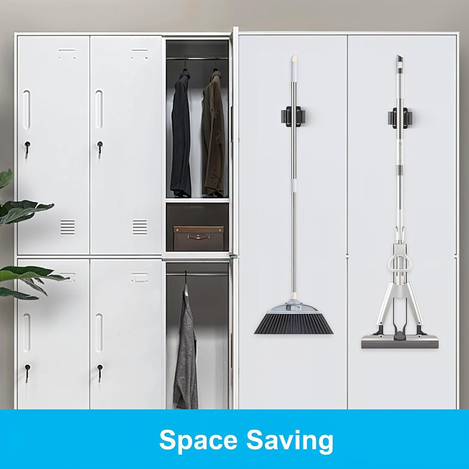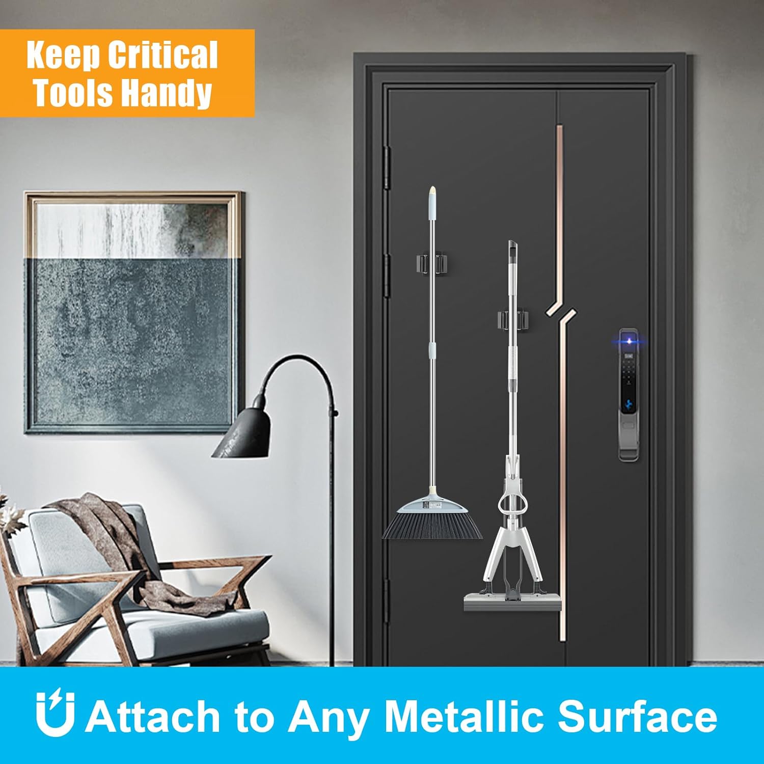 4PCS Magnetic Mop Broom Holder – Heavy Duty, Anti-Slip Wall Mount with Adjustable Gripper for Garage, Kitchen, Laundry & Garden Organization
