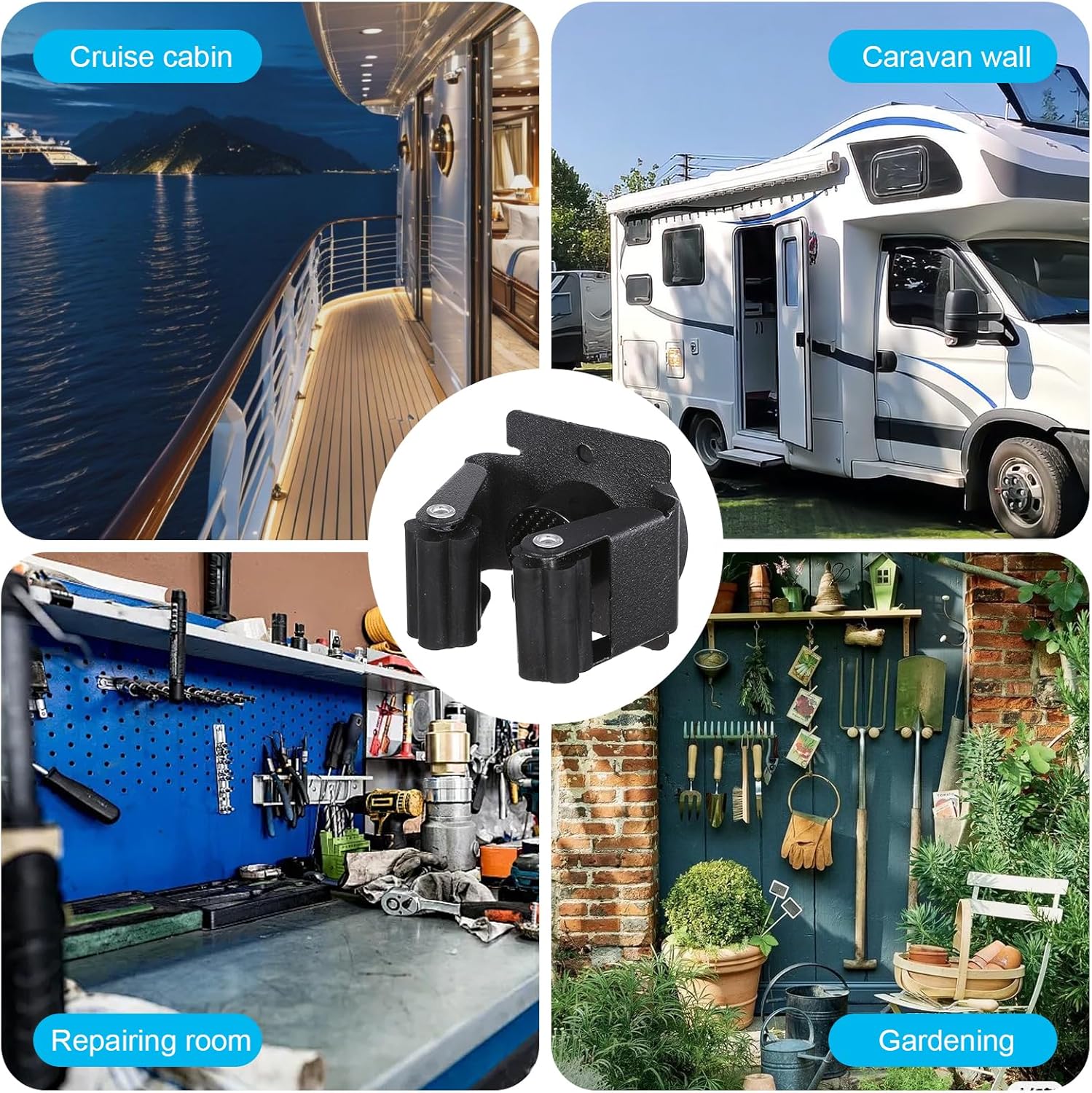 - 【Adjustable & Versatile】 Petal-shaped silicone rollers grip brooms, mops, shovels, and tools (15–38mm thick) to prevent falls and save space.