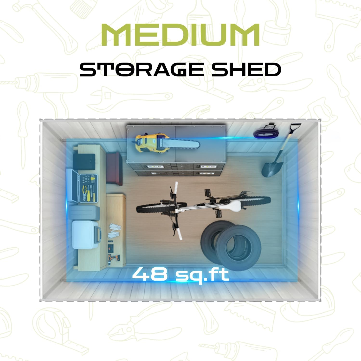 - 【Spacious & Multi-Functional】This 48 sq.ft outdoor storage shed offers versatile space for gardening tools, seasonal gear, or as a compact workshop, featuring 4 vents to prevent humidity damage