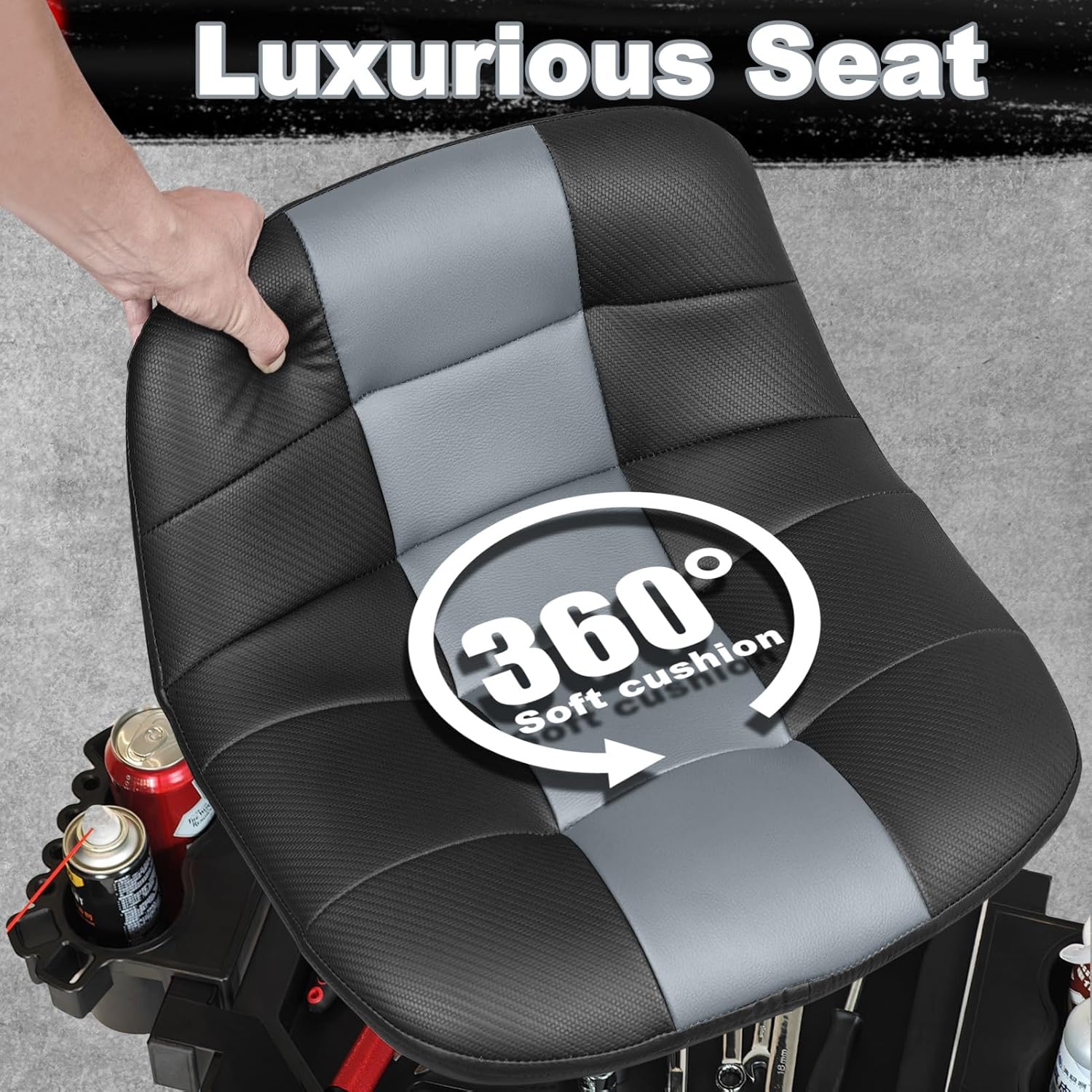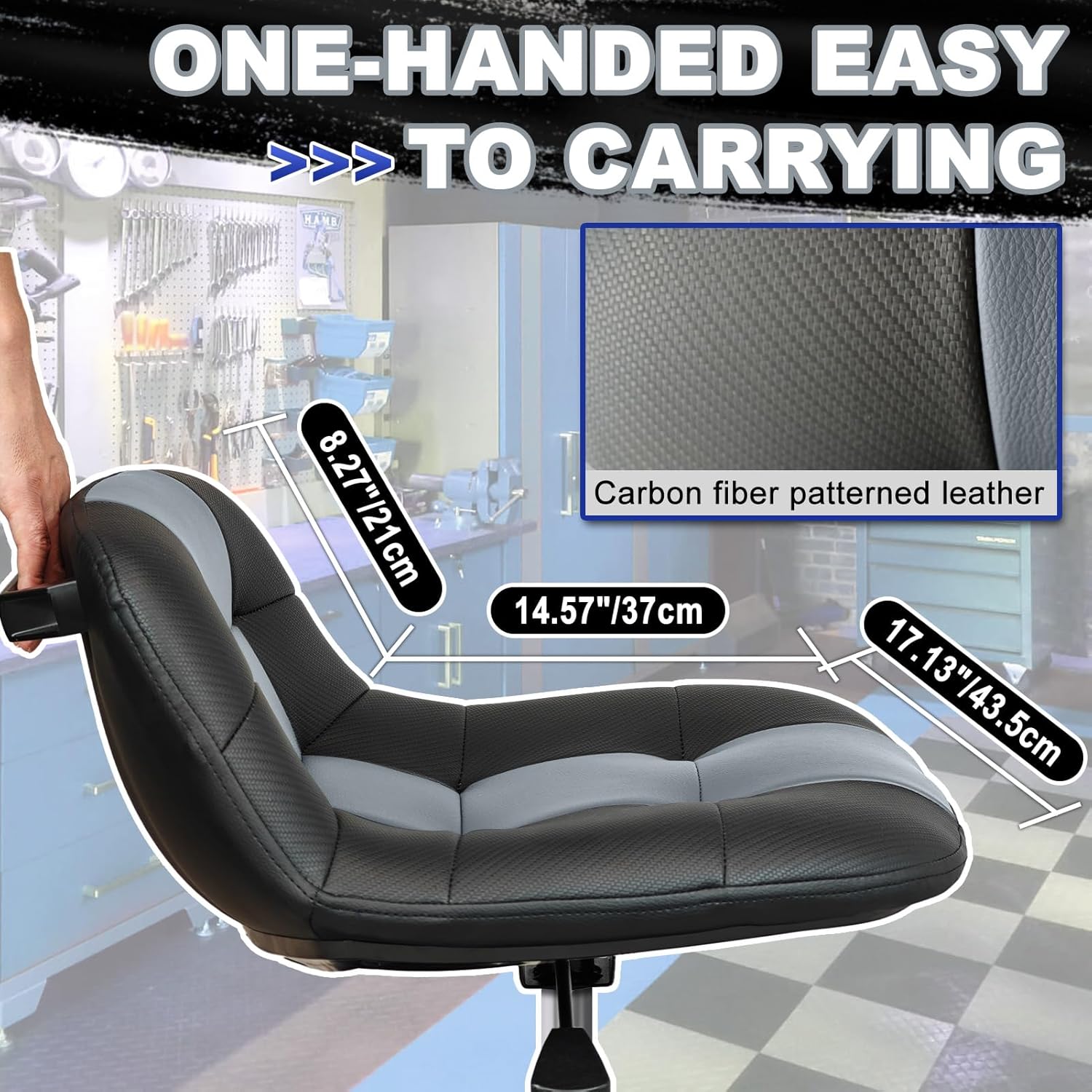 - Heavy Duty Garage Mechanic Stool: The Rolling Mechanic Stool is constructed with a robust angle steel frame, ensuring durability and reliability. Ideal for use in garages, workshops, and other demanding work environments