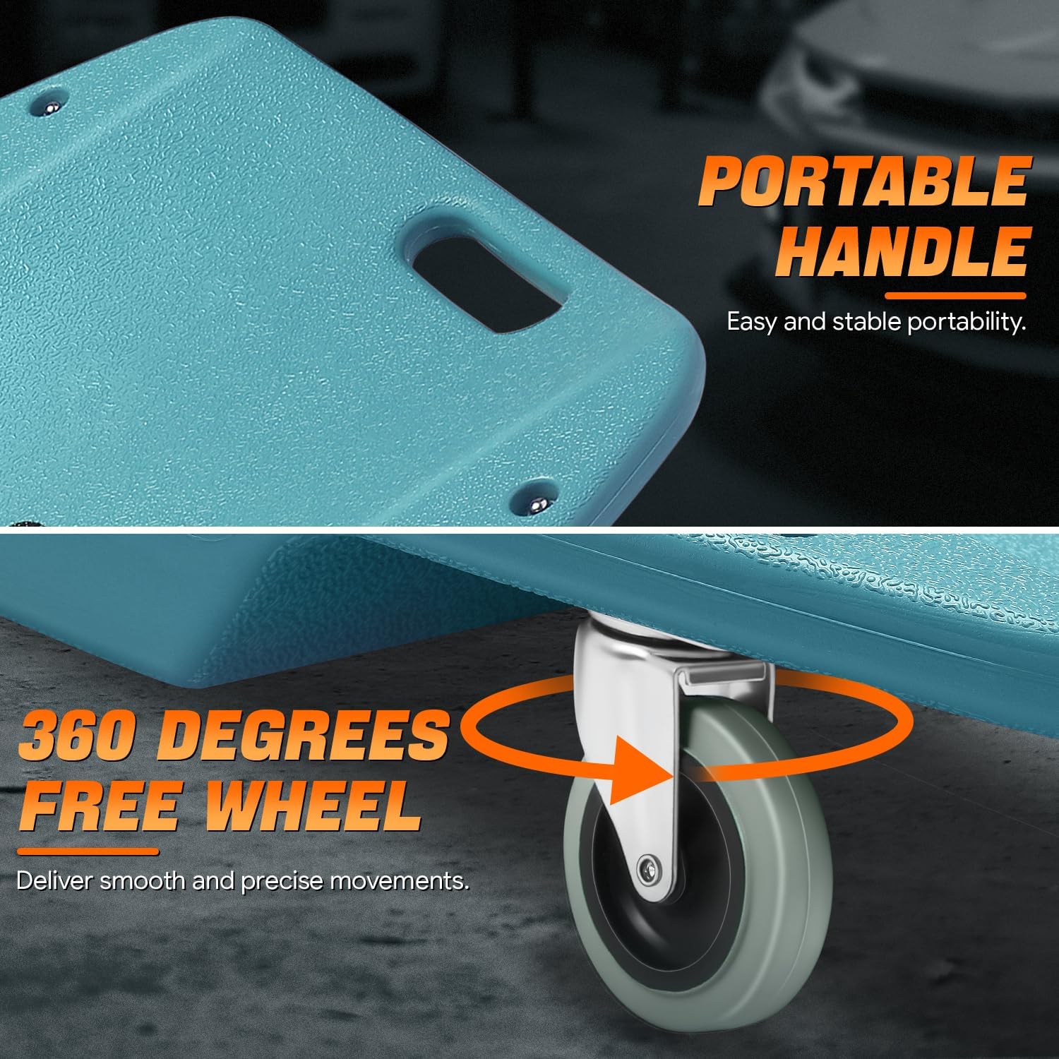 - QUALITY CONSTRUCTION: The low-profile creeper has high-density polyethylene construction frame that promises to withstand the test of time. It boasts non-marring polyurethane swivel caster wheels with excellent weight bearing capacity.